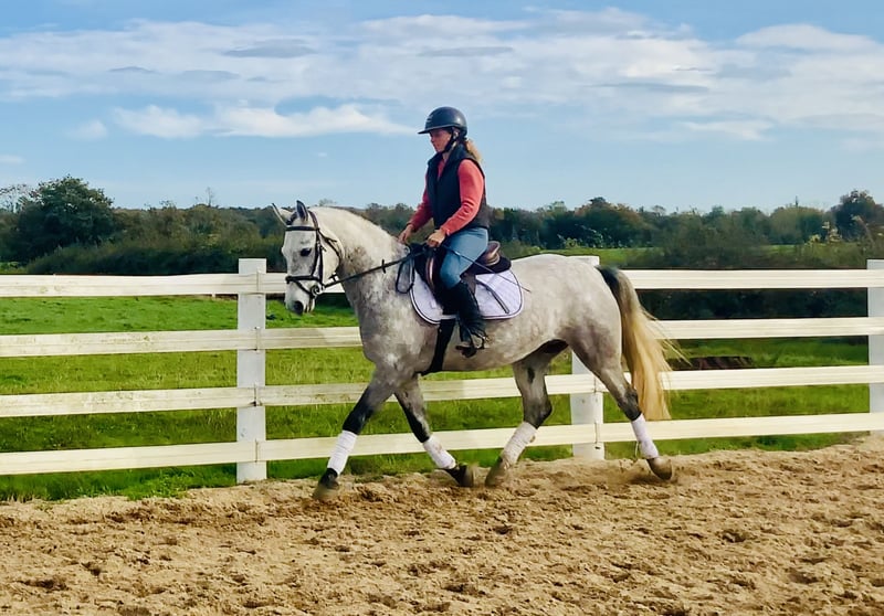 Perfektes Einsteigerpony – Sicher, brav & gelassen – 4-jähriger reinrassiger Connemara-Wallach Hier kommt Silver, ein unglaublich lieber 4-jähriger reinrassiger Connemara-Wallach mit einem Stockmaß von 1,47 m (14.2 hh). Mit seinem ruhigen und freundlichen Wesen ist Silver ein echtes Verlasspony – absolut sicher, geduldig und unkompliziert im täglichen Umgang und unter dem Sattel. Silver ist in jeder Hinsicht einfach – brav beim Schmied, verladefromm, leicht zu fangen, ruhig im Straßenverkehr und ein echter Schatz im Umgang. Auch unter dem Sattel zeigt er sich zuverlässig und unkompliziert. Er wird nie stark oder übermütig und schenkt seinem Reiter stets Vertrauen. Silver ist ausgeglichen, aber dennoch arbeitsfreudig und bemüht – genau das richtige Pony für junge oder unerfahrene Reiter. Optisch ist er ein echter Hingucker mit einem hübschen Kopf und harmonischem Körperbau. Er bewegt sich mit drei taktsicheren, schwungvollen Grundgangarten, hat ein weiches Maul und einen tollen Charakter. Beim Springen zeigt er viel Talent und Ehrlichkeit, er wurde bis 90 cm gearbeitet und ist immer bereit, seinem Reiter zu helfen. Silver wäre das perfekte Ponyclub-Pony – er bringt junge Reiter sicher von den ersten Kreuzchen bis zu den höheren Klassen. Er gibt Sicherheit, macht Spaß und ist dabei leistungsbereit genug, um mit seinem Reiter weiter zu wachsen. Er ist voll registriert mit vollständiger Connemara-Abstammung: Dunloughan Troy x Coral Star x Mervyn Kingsmill – eine Kombination, die für Qualität, Charakter und Zuverlässigkeit steht. Silver hat keine Stallmacken, ist offen für jede tierärztliche Untersuchung, und wurde mit größter Sorgfalt ausgebildet. Der Preis inkludiert die Lieferung zu Ihrem Stall in Großbritannien, und bei Nichtgefallen ist ein Umtausch möglich. Sehen Sie sich das Video an und kontaktieren Sie mich jederzeit unter 00353868077626 oder per E-Mail an gertytynan@gmail.com