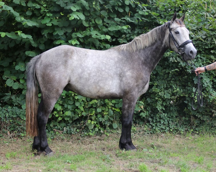 Dreamer is a currently 152 cm tall Connemara gelding (he is still growing a few centimeters). His status is: HWSD N/N. Pedigree available upon request. :-) Dreamer has been under saddle for a few weeks now. We are so incredibly proud of this little guy; from day one, he has been so well-behaved and cool. He has never put a foot wrong. Dreamer is now confidently moving in all three gaits. Yesterday, we took him to the indoor arena and mounted him in the corner using a mounting block without lunging him first. He does everything like a seasoned pro. Just like our Connemara ponies, he can do it all and remains calm and unflappable. Dreamer is an all-rounder and is already suitable as a family pony, even for juniors. Dreamer is robust and has always been healthy; he grew up in a herd on the green island. A recent veterinary examination is already available. For more information, we look forward to your calls at: 0177/2721831.