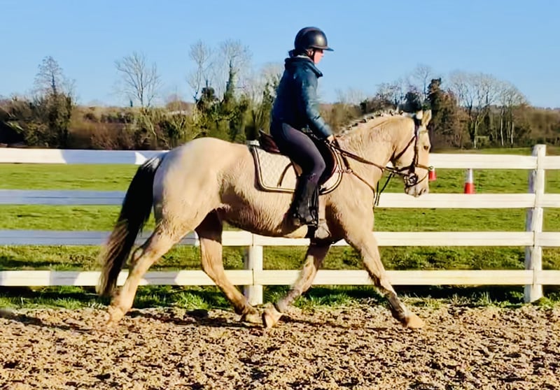 Andy is a 5-year-old dun Connemara gelding standing approximately 15 hands. He is a classic Connemara with plenty of substance, a strong build, and the highly valued, correct conformation ("a leg in each corner").