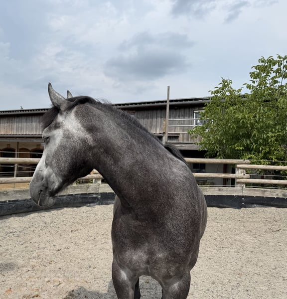🌿 Charming Connemara Cross – Loyal Leisure Partner Seeks New Home 🌿 For sale is a 5-year-old Connemara cross gelding, approximately 16.1 hh, barefoot, trailer-safe, and a true sweetheart. He is ridden in the three basic gaits and has already gained initial experience in jumping training. Out in the field, he consistently proves to be well-behaved, eager, and attentive – without becoming hot. Whether alone or in a group, he is always motivated and reliable on the move. Character-wise, he is a sweet, affectionate, and dependable companion who brings joy with his charming personality. Always up for fun and with a listening ear! He is vaccinated, has a current health certificate, and has shown to be very robust and healthy so far – no illness or lameness to date. A wonderful horse for people seeking an honest leisure partner with potential. A dream home is sought for him where he can be truly happy. Ideally, a small herd in an open stable, provided it is suitable for lower-ranking horses. Alternatively, box stall housing with regular turnout is also an option – sufficient movement is important for him. Accessories such as saddle or bridle can be purchased separately.