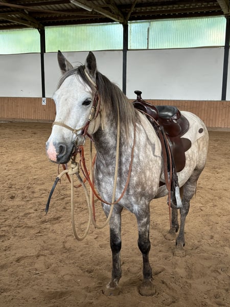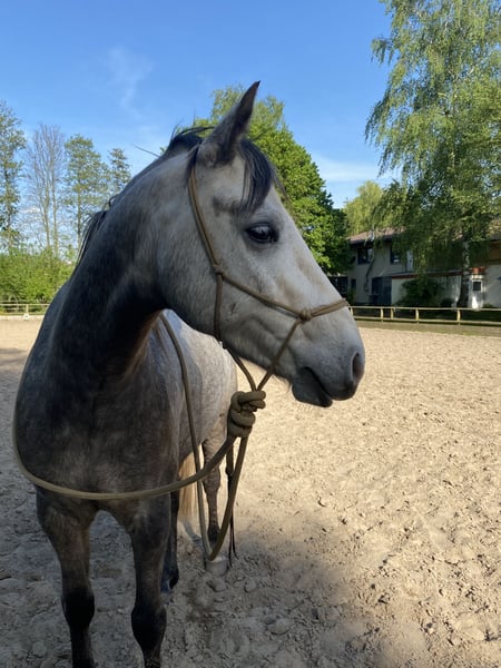 With a heavy heart, we are seeking a new home for our gelding, Golden Smokey Memory (nickname Mo), as unfortunately, due to lack of time, we are unable to give him the attention he deserves. Mo is 6 years old, has been raised by us since birth, and was lovingly and patiently trained by my daughter. Additionally, I have worked with him on dual activation and trained him in ground work according to Michael Geitner’s methods. He is a true heart pony – always eager to do his best, friendly in manner, and possesses an honest and very lovable personality. Currently, Mo is mainly ridden in leisure and western disciplines, but he is not limited to these. His young age and willingness to learn offer great potential for further, individualized training in various directions. Anyone looking for a pony that works well with its human and always gives its best will find a loyal lifetime partner in Mo. We are happy to provide more information, photos, and videos upon serious interest. Please contact us preferably via WhatsApp.
