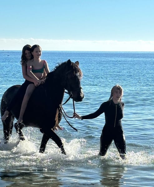 CONEMARA PONY PURE – RELIABEL – WINNER 🐴 Keilternan Buzzard (Buzz) 🔹 Breed: Pure Connemara 🔹 Height: 1.54 m (15.1 hh) 🔹 Year of birth: 2017 🔹 Coat: Dark chestnut (very beautiful) 🔹 Discipline: Show jumping, dressage, and children's leisure riding 🔹 Competition level: Winner in 1.05 m classes 🔹 Current rider: 12-year-old girl Buzz is a very well-rounded, honest, and reliable pony, regularly ridden by children. It is ideal for families who want to compete and enjoy riding with complete safety. ✨ Characteristics: - Winner at 1.05 m show jumping competitions - Easily jumps up to 1.25 m at home - Very good dressage skills - Experience in gymkhanas - Swims in the sea, calm and safe - Excellent temperament, easy to mount and handle - Suitable for children, families, and riding clubs 🩺 Recent vet check: clean, no remarks. 📍 Location: Ibiza, Spain (Balearic Islands) 🚚 Assistance with transport possible 🎥 Videos available 💶 Price: €16,000