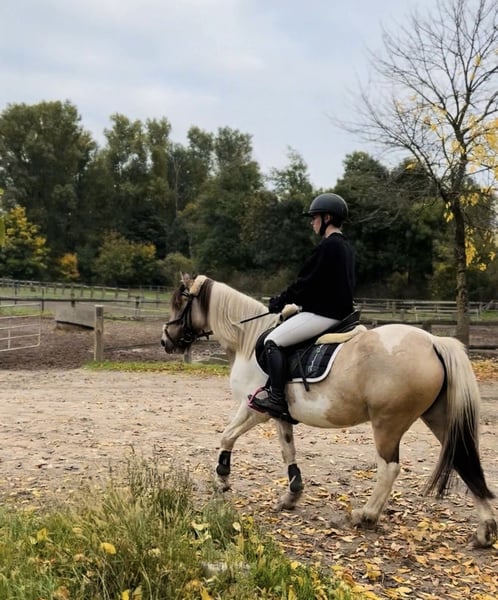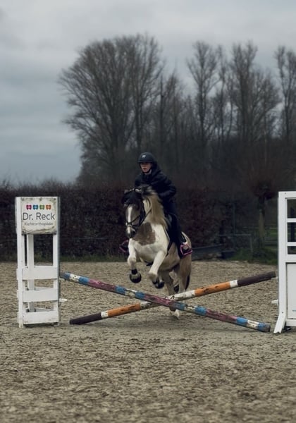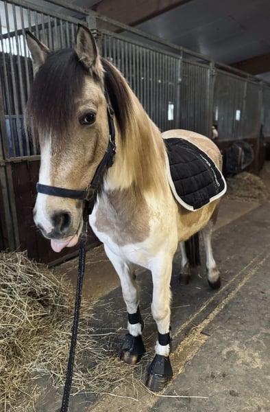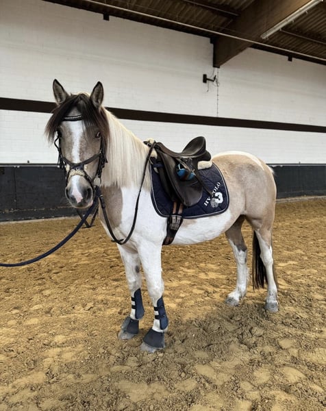 Porcelain-checked mare with Dartmoor papers, 5 years old, seeking a loving home. Name: Betty Breed: Dartmoor Pony Color: Beige and white pinto Height: approximately 14.1 hh Age: 5 years Gender: Mare The beautiful Dartmoor mare Betty is a real eye-catcher and impresses with her gentle, reliable nature. Character: * Sweet, dependable, and fearless * Initially a bit shy and needs time to build trust * Forms a close bond with her handler through patience Special features: * Barefoot and absolutely easy-going with the farrier * Loadable and well-behaved in daily handling * Ideal for leisure riders looking for a sensitive and loyal partner For Betty, I am looking for a caring home where she can take her time to settle in and where her gentle nature is appreciated. Reinings videos and additional photos are available. If interested or if you have any questions, please feel free to contact me. To avoid riding tourism, I kindly ask for a fee of 30 euros for a trial ride.