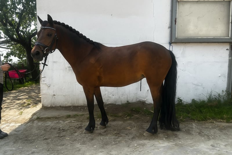 Dartmoor mare with tack. She is well-behaved, does not buck or rear, loads calmly, and stands patiently for the farrier. Comes with a saddle fitted by the saddle fitter and all other necessary equipment, ready to ride. Suitable for lead-rein classes or for obtaining riding badges. Also perfect for leisure riding. She is calm and willing to jump small fences. Videos available. Test rides can be arranged at any time. An equine health certificate at the buyer's expense is also very welcome.