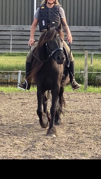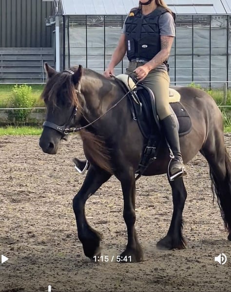 Merrie 28 April 2021 dus bijna 5 jaar. Vader Guards Andy Moeder Olimpia de knip Staat ingeschreven bij vereniging Nederlands Fell pony Stamboek *Nog niet naar merrie keuring met haar geweest. Bewijs van inschrijving Stamboek en paardenpaspoort aanwezig -Grote maat Fell (142cm)maat valt nog binnen evt.opname stamboek.zie* -Mensgericht ,inteligent,leert snel,nieuwsgierig,aanhankelijk,lief. -Mooie verschijning veel behang -Echte Fell qua karakter -Beleerd (bitloos) maar dit moet verder worden bevestigd en opgepakt. -Grondwerk Human&Horse methode -Wordt 8bwekelijks door hoefsmid bekapt goede sterke hoeven. -Jaarlijks paardentandarts geen afwijking verslag in te zien. Fell pony is een veelzijdige pony die snel leert denk aan mennen,dressuur,springen,endurance ect.eventueel fokmerrie. Nog een jonge pony die nog naar de hand te zetten is. Zoekt door verschillende omstandigheden een ander ❤️🏡. Geen handelaren. (Ruiter op foto is 171cm) Bij oprechte interesse en/of meer info reageer gerust🙏 -