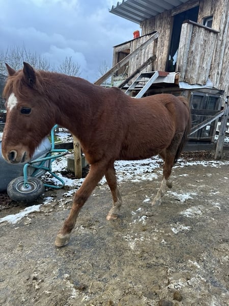 Hero is a lovely pony suitable for children and perfect for having fun with. He is friendly, affectionate, and gentle in his interactions, and he is low in the herd hierarchy. He can be easily led out of the stable and groomed by kids on his own, and he is absolutely attentive and gentle. Under saddle, he is ridden in walk and trot. When lunged, he can also do canter. According to previous owners, he has also been driven (I have videos of this), but we haven't done so ourselves since we don't have a cart. He loves groundwork and going for walks more than anything. He is familiar with children, cars, tractors, dogs, and the general hustle and bustle. He came to us with a sad and troubled past. He had to relearn to trust humans and overcome his fears. Now, he has become a wonderful children's pony. In the busy environment of our riding therapy center, he sometimes feels a bit lost, which is why we are looking for a great family for him and do not want to place him in riding schools. Of course, he sometimes has a bit of a pony stubborn streak, but he handles it very charmingly. Hero is still developing and is very motivated here. More photos and videos available upon request.