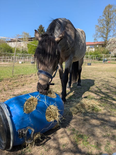 Verkaufe eine wunderschöne und liebevolle Islandmix-Stute. Sie ist unfassbar lieb zu Kindern, ist generell sehr verschmust und ihren Besitzern sehr nahe. Ihren Charakter würde ich als ruhig und augeglichen beschreiben. Sie wird aktuell von meiner Frau, meiner Tochter und mir geritten. Wir reiten sie im Moment englisch, da man sie uns als Englisch ausgebildet verkauft hat. Haben aber in letzter Zeit immer mehr Anzeichen dafür das sie ebenfalls eine Western-Ausbildung genossen haben könnte, da sie auf Westernhilfen, vor allem den akustischen Hilfen sehr gut reagiert! Sie ist im Gelände absolut sicher, sie erschreckt sich weder vor großen Landmaschinen noch vor aufgescheuchten Tieren. Einzig Wassersprenger findet sie etwas seltsam, läuft aber mit gutem zureden anstandslos daran vorbei! Sie ist trittsicher auf jedem Untergrund, und wird zur Zeit Barhuf gehalten. Sie ist eine wunderschöne Buckskin Stute, die im Sommer eher hell (Bernsteinfarben) ist und im Winter wird sie eher grau und dunkelgrau und im Gesicht fast sowas wie eine Waschbärmaske :-)