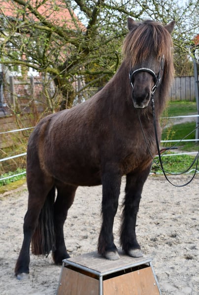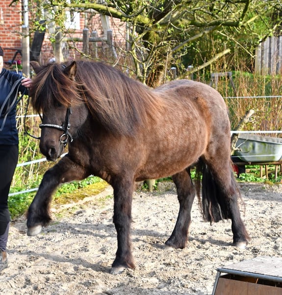 Wir suchen schweren Herzens ein neues Zuhause für unsere Islandstute. Sie hat eine Traumatisierung und ist als Reitpferd nicht geeignet. Wir haben viel Zeit, Liebe und Training investiert, sind aber zu dem Schluss gekommen, dass sie unter dem Sattel gefährlich bleibt. Unsere Stute ist 10 Jahre alt, gesund und sehr sozial. Sie wurde regelmäßig entwurmt, geimpft, von einer Physiotherapeutin behandelt und die Zähne wurden kontrolliert. Sie verfügt über eine umfassende Ausbildung am Boden: Klassische Arbeit an der Hand (im Schritt alle Seitengänge, im Trab Schenkelweichen), Arbeit am langen Zügel auch schon recht gut, Liberty und Zirkus angefangen. Unsere Stute ist fein und sehr sensibel. Sie hat viel Spaß an der Arbeit und geht gerne spazieren. Wir wünschen uns ein 5-Sterne zu Hause in Pony- oder Islandpferdegesellschaft, mit Freude an der Arbeit am Boden. Sie möchte nicht als Beisteller abgeschoben werden und braucht Aufmerksamkeit und eine Aufgabe. Sie wäre auch für die Zucht geeignet, da sie sehr schöne Bewegungen hat, eine gute Abstammung, als Fohlen prämiert war und Fohlen liebt. Die Auswahl des Hengstes müsste aber mit Bedacht getroffen werden, damit sie ihre Problematik nicht an ihre Fohlen weitergibt. Anfragen bitte mit einer ausführlichen Vorstellung. Gerne können wir am Telefon weitere Infos geben.