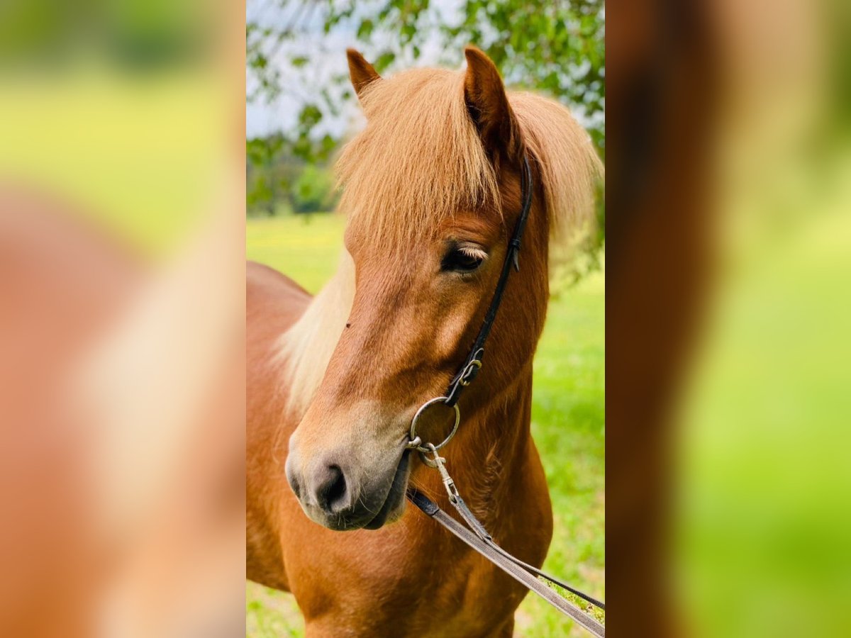 Schweren Herzens verkaufen wir unsere Halldóra vom Paffenbuck 2. Sie ist ein tolles Pferd mit schönem Exterieur, hat gute Gänge und einen lieben, aber dennoch anspruchsvollen Charakter. Sie ist sehr robust und steht bei uns bei allen Wetterlagen ohne Decke. Als Zusatzfutter bekommt sie nur Mineralien. Sie hat ihr Leben lang im Offenstall gelebt und hat sich dort sehr sozial gezeigt. Momentan steht sie in der Box, da sich keine andere Möglichkeit ergeben hat. Sie war bei uns nie krank. Sie steht brav beim Putzen und beim Hufschmied. Hänger fährt sie super, jedoch könnte man das Einsteigen noch etwas üben. Vom Charakter her ist sie ein liebevolles Pferd, das gerne kuschelt und mit einem in der Sonne schläft. Wichtig ist jedoch, dass der neue Reiter von Anfang an klar mit ihr ist. Sie neigt etwas dazu, selbst entscheiden zu wollen. Das kann man aber gut klären, wenn man sie von Anfang an nicht entscheiden lässt und ihr verständnisvoll, aber klar zeigt, was man von ihr möchte. Wenn man das erreicht, würde sie sehr viel für einen machen. Für den Sport im Sport-B-Bereich ist sie interessant. Sie hat einen tollen Tölt, der einem ein unglaubliches Gefühl gibt. Ihr Trab ist ebenfalls gut. Sie hat Turniererfahrung, ist aber bisher nur mit einem kleinen Mädchen in den Prüfungen gestartet. Schritt und Galopp muss man sich im Moment noch etwas erarbeiten. Aktuell ist sie nicht richtig im Training, sie kommt viel auf Ausritte mit und macht Freiarbeit auf dem Platz. Wir sehen sie auch sehr in der Zucht. Sie ist ein Prämienfohlen aus Bayern und hat, wie bereits erwähnt, ein tolles Exterieur sowie schöne Bewegungen. Ihr Vater ist Þróttur frá Hvalnesi. Seit wir sie 2020 gekauft haben, durfte sie regelmässig Beritt geniessen. Bei Fragen und/oder Interesse bin ich unter +41 79 571 68 00 zu erreichen.