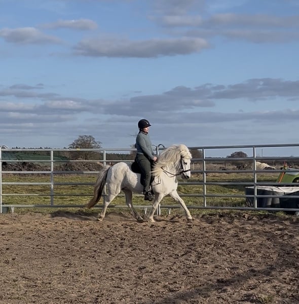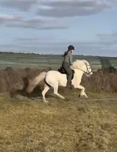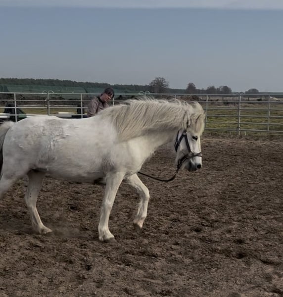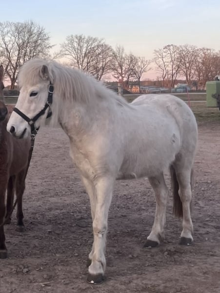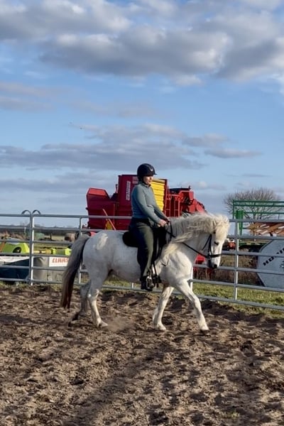 Verkaufe Islandpferd – Schimmel, geb. 2014, Stockmaß 139 cm. Sie ist gut geritten und sticht mit ihrer rittigkeit hervor. Ihre 5 Gänge sind klar trennbar voneinander zu reiten. Sie ist gut geritten, stand über den Winter und wird nun gerade wieder antrainiert. Sie ist im Gelände sehr flott unterwegs und mit ordentlich Go ausgestattet, aber alles andere als Schreckhaft. Sie geht auch in der Gruppe mutig voran. Sie ist nicht für Anfänger geeignet und braucht einen Reiter der ihr Ruhe vermitteln kann. Wir können sie uns sehr gut im Sport vorstellen, bei einem ambitionierten Reiter mit Isländer Know-how ist sie sicher perfekt aufgehoben. Sie ist reiterlich ein Traum, im Umgang hat sie ein paar „Problemchen“. Sie mag es nicht an den Ohren oder Hinterbeinen angefasst zu werden. Dabei tritt oder beißt sie niemals, aber zieht den Kopf weg und ist sehr angespannt. Dies ist mit ihrem Menschen und viel Ruhe schon deutlich besser geworden. Leider schafft ihre Reiterin es nicht mehr raus. Sie ist ein ein Mann pferd und braucht etwas länger um zu vertrauen. Daher günstiger abzugeben, denn im allgemeinen Umgang muss weiter Zeit investiert werden. Das können wir mit wechselnden Reitern und Zubereitungen Zeit leider nicht weiter verfolgen. Somit suchen wir ihr perfektes Zuhause!! Sicher auch in der Zucht denkbar, hatte bei uns aber kein Fohlen. Volles Papier mit guter Abstammung. . Bei Interesse oder weiteren Fragen stehe ich gerne zur Verfügung. Ein Probereiten ist nach Vereinbarung möglich und wird mit 40€ berechnet.