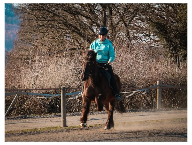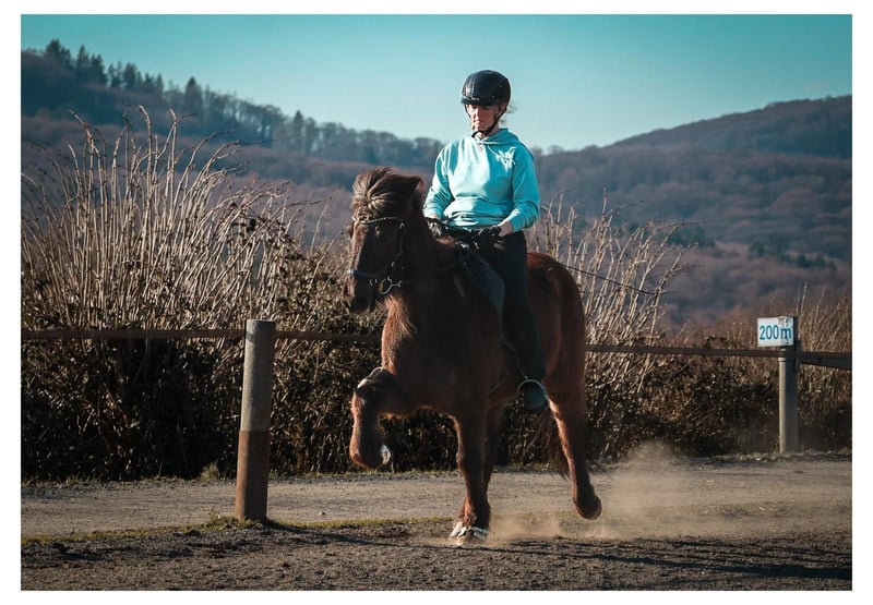 Flipa ist eine charmante, fünfgängig veranlagte Stute, die mit ihrer Freundlichkeit und ihrem außergewöhnlich bequemen Tölt sofort begeistert. Geboren auf dem GPZ, war sie zunächst als Zuchtstute bei den Feldmanns im Einsatz, bevor sie 2024 verkauft wurde. Nun steht sie erneut zum Verkauf, da ihr junger Reiter ihr körperlich entwachsen ist und Flipa für größere und schwerere Reiter schlicht zu wenig Kraft mitbringt. Die fein gebaute, eher schmale Stute. Sie ist leicht überbaut und hat einen Rücken mit leichtem Schwung. Aus diesem Grund wird sie neben ihrer Tätigkeit in der Reitschule regelmäßig von unseren Bereiterinnen dressurmäßig gearbeitet, um ihre Durchlässigkeit, Tragkraft und allgemeine Balance gezielt zu erhalten und weiter zu verbessern. Ihre große Stärke ist ganz klar der Tölt. Er ist ihre bevorzugte Gangart, stets taktklar und unglaublich bequem zu sitzen, dabei zeigt sie schöne, ansprechende Bewegungen. Mit weiterer Kraft und gezielter Arbeit wird sie hier noch konstanter in eine schöne Form finden. Der Schritt ist, wenn sie losgelassen ist, geschmeidig und von gutem Takt. Der Trab ist unter dem Reiter noch nicht lange abrufbar und kann behutsam weiterentwickelt werden, da sie bei zu viel Einwirkung sonst gerne wieder in den Tölt wechselt. Im Galopp benötigt sie derzeit noch ein etwas höheres Grundtempo, um diesen sicher halten zu können. Unter dem Sattel vermittelt Flipa ein durchweg sehr angenehmes und sicheres Reitgefühl und gehört zu den Pferden, auf denen man sich sofort wohlfühlt. Lässt man sie einfach machen, trägt sie ihren Reiter im bequemsten Tölt entspannt durch den Wald. Möchte man jedoch mehr Arbeit in Form von gezielten Lektionen, testet sie durchaus, wie ernst es dem Reiter ist. Dann kann sie kurz ihren Unmut zeigen, nicht aus Unwillen, sondern weil es für sie körperlich anstrengend wird. In diesen Momenten braucht sie einen ruhigen, erfahrenen Reiter mit Gefühl, Geduld und Verständnis für ihre körperlichen Voraussetzungen. Dabei wird sie jedoch niemals bockig, rennt nicht los und ist zu keiner Zeit unkontrollierbar. Im Gegenteil, sie möchte ihrem Menschen immer gefallen, manchmal fast zu sehr Flipa ist im Umgang ein absoluter Schatz. Sie ist gut erzogen und unkompliziert im täglichen Miteinander, genau das macht sie bei unseren Reitschülern so beliebt. Am GPZ steht sie ausschließlich in der Herde mit anderen Stuten und zeigt sich dort stets freundlich und sozial verträglich. Auch ihre Abstammung unterstreicht ihre klare Gangveranlagung und ihr angenehmes Reitgefühl. Ihr Vater Glampi vom Warmetal war ein traumschöner, extrem leicht zu reitender Supertölter und Sohn des Tölt-Weltmeisters Thor von Sporz. Damit ist er Halbruder des ebenfalls von Andreas Trappe vorgestellten und gekörten Tölt-Weltmeisters Tyr vom Rappenhof. Von mütterlicher Seite stammt sie aus der Stute Fregn fra Minni-Borg, einer guten, sehr klar veranlagten Viergangstute, die ihre Zuverlässigkeit und Solidität deutlich weitergegeben hat. Flipa eignet sich ideal für leichtere, nicht zu große Reiter, die Spaß am Reiten haben, flott durch den Wald tölten wollen oder vielleicht auch einmal Turnierluft in Töltprüfungen schnuppern möchten. Vor allem sucht sie eine feste Bezugsperson, für die sie nicht nur ein verlässliches Reitpferd, sondern auch eine treue beste Freundin ist. Haben Sie Fragen oder möchten einen Termin vereinbaren? Kontaktieren Sie Frederic Feldmann gerne per E-Mail unter ff@gangpferdezentrum.de oder telefonisch unter 0151/17373914. Alternativ erreichen Sie uns auch jederzeit über unsere Instagram-Seite. Wir freuen uns auf Ihre Nachricht.