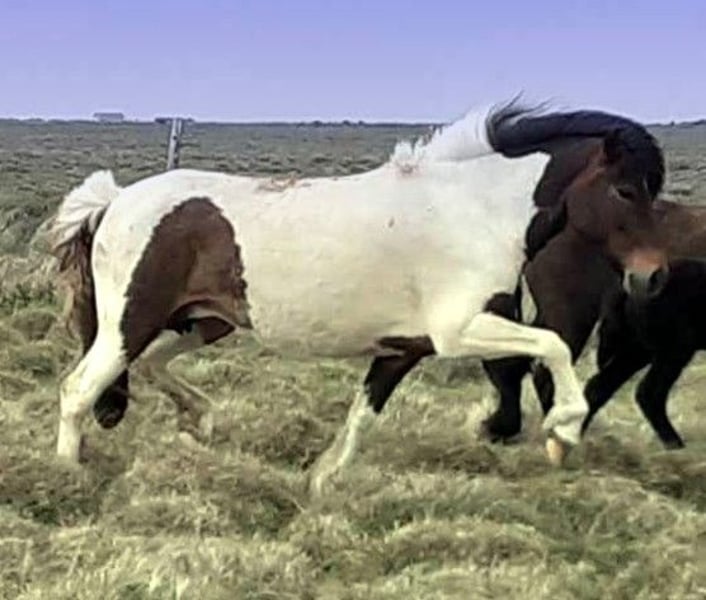 Esja frá Bergþórshvoli II Stute aus 2013 Farbe: Braunschecke Eignung: tolle Zuchtstute Abstammung: IS2013280577 V: Gnýr frá Syðri-Úlfsstöðum VV: Stáli frá Kjarri M: Assa frá Bergþórshvoli II MV: Snævar Þór frá Eystra-Fróðholti MVV: Orri frá Þúfu í Landeyjum tragend von Snjall frá Jórvík 1 - Dunkelerdfarbschecke V: Snillingur frá Íbishóli VV: Vafi frá Ysta-Mó (8.49) M: Fjöður frá Skíðbakka I MV: Bóas frá Húsavík (8.43) Esja ist eine zuchterfahrene charakterstarke Stute, die im Dezember aus Island importiert wurde. Der Plan war, sie nach der Fohlenzeit (Abfohltermin ist ca. Anfang/Mitte Juni) in Beritt zu nehmen. Schnell hat sich gezeigt, dass Esja eine Zuchtstute mit Leib und Seele ist und so haben wir - auch aus Rücksicht auf ihr Alter - davon abgesehen, Sie unter den Sattel zu nehmen. Sie ist eher sensibel und sehr auf die Körpersprache des Menschen ausgerichtet. Hat ihre Zeit gebraucht, aufzutauen und zu vertrauen und sollte deshalb ihren zukünftigen Platz bei in einer kleinen mit Herzenswärme geführten Hobbyzucht finden. In einer überschaubaren Stutenherde, in ruhigem Umfeld ohne Hektik und Stress. Hierzu könnte Sie in diesem Sommer den hofeigenen Hengst oder natürlich einen Hengst Ihrer Wahl (nicht im Preis enthalten) nutzen. Bevorzugt bei Pferdemenschen, Horsemanshipper, die ohne Druck mit viel Ruhe auf ihr Wesen eingehen und ihr im Laufe der Zeit immer mehr an Wissen vermitteln. Oder Sie einfach Pferd sein lassen. Esja sucht Menschen mit Herzenswärme.