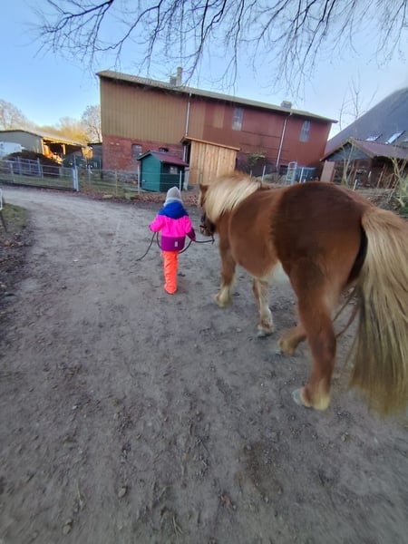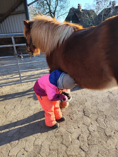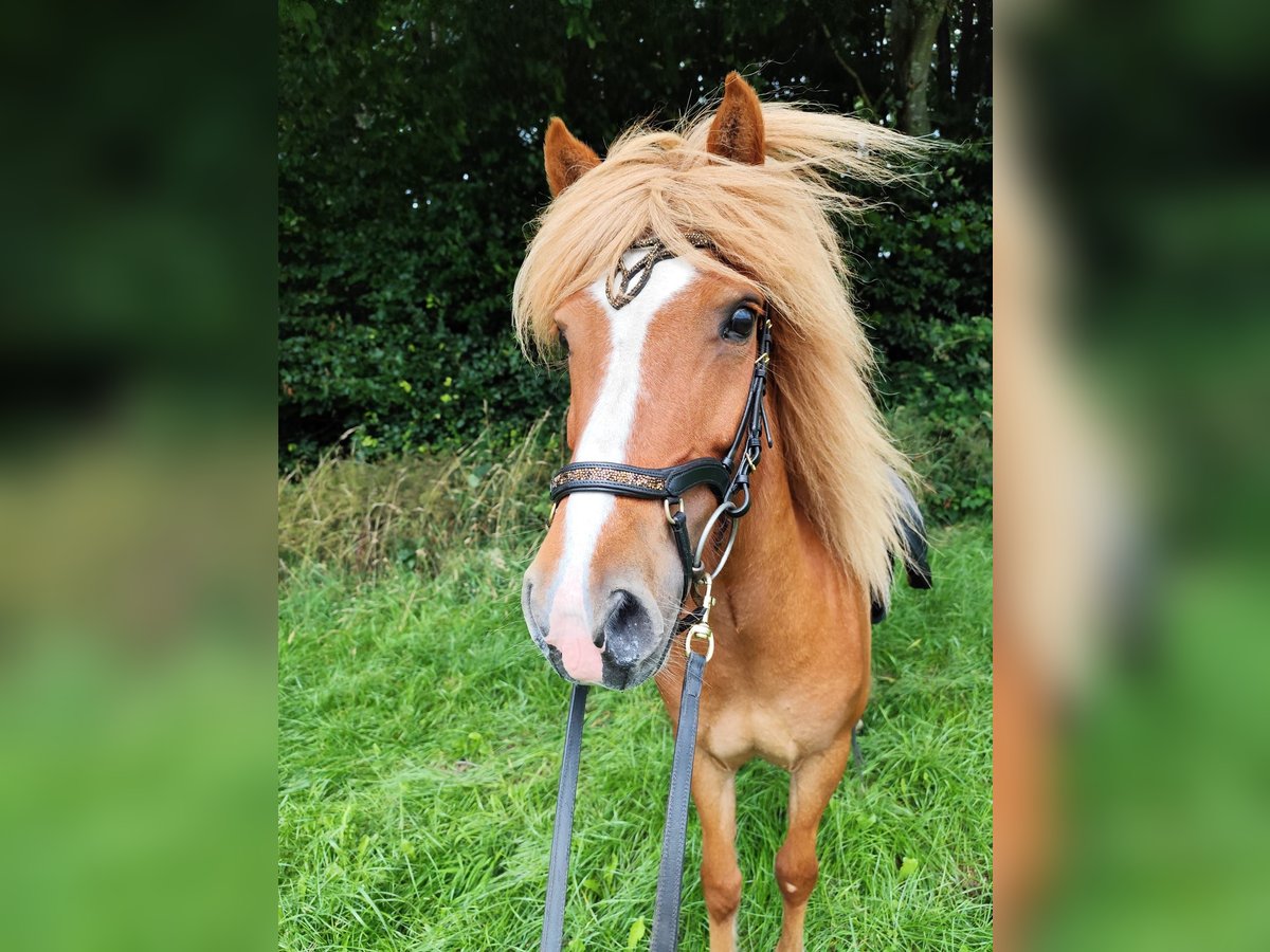Wundervolle Islandstute Isländer Islandpferd Ich suche für meine Fuchsstute Skrauta (geb. 2.07.2012, ca. 134 cm) ein wunderbares neues Zuhause, in dem sie geschätzt und geliebt wird. Skrauta befindet sich seit Oktober 2023 in meinem Besitz, Und hatte bei der vorherigen Besitzerin bereits ein Fohlen und war eine super Muttetstute. Bei der vorherigen Besitzerin wurde sie nur sporadisch im Gelände geritten, bei mir hat sie eine Grundausbildung erhalten, überwiegend waren wir aber im Gelände unterwegs, hier zeigt sie sich immer regulierbar und dennoch lauffreudig und sehr motiviert. Ihre 4 Grundgangarten sind klar getrennt voneinander, schwungvoll und trotzdem angenehm zu sitzen. Den Tölt haben wir im Gelände schonend mit eingebunden, sie töltet mittlerweile auch auf den Reitplatz, unser Fokus lag immer im Gelände, hier bringt sie einfach Spaß, egal ob alleine, in einer großen Gruppe oder auch in fremder Umgebung. Ihre jugendliche Reitbeteiligung reitet sie auf dem Platz, im Gelände und im Reituntericht eigenständig. Meine sechsjährige Tochter reitet sie an der Longe so wie geführt, im Umgang ist sie mit ihr ein echter Schatz. Aufgrund ihres Ausbildungsstandes wünsche ich mir für sie einen erfahrenen Reiter, der ihr Sicherheit gibt, unsichere Reiter spiegelt sie. Als Anfänger- oder Kinderpferd sehe ich sie (noch) nicht. Skrauta ist ein freundliches, feinfühliges Pferd, welches auch viel Spaß an Bodenarbeit zeigt. Das passende Zuhause steht für mich an erster Stelle. Ich werde diesen wundervollen Pony zeitlich nicht so gerecht, wie sie es verdient, sie liebt es täglich betüttelt zu werden. Bei ernsthaftem Interesse gebe ich gern weitere Auskünfte sowie Fotos und Videos. Kein Ekzem! Ausrüstung kann auf Wunsch gegen Aufpreis mit erworben werden.