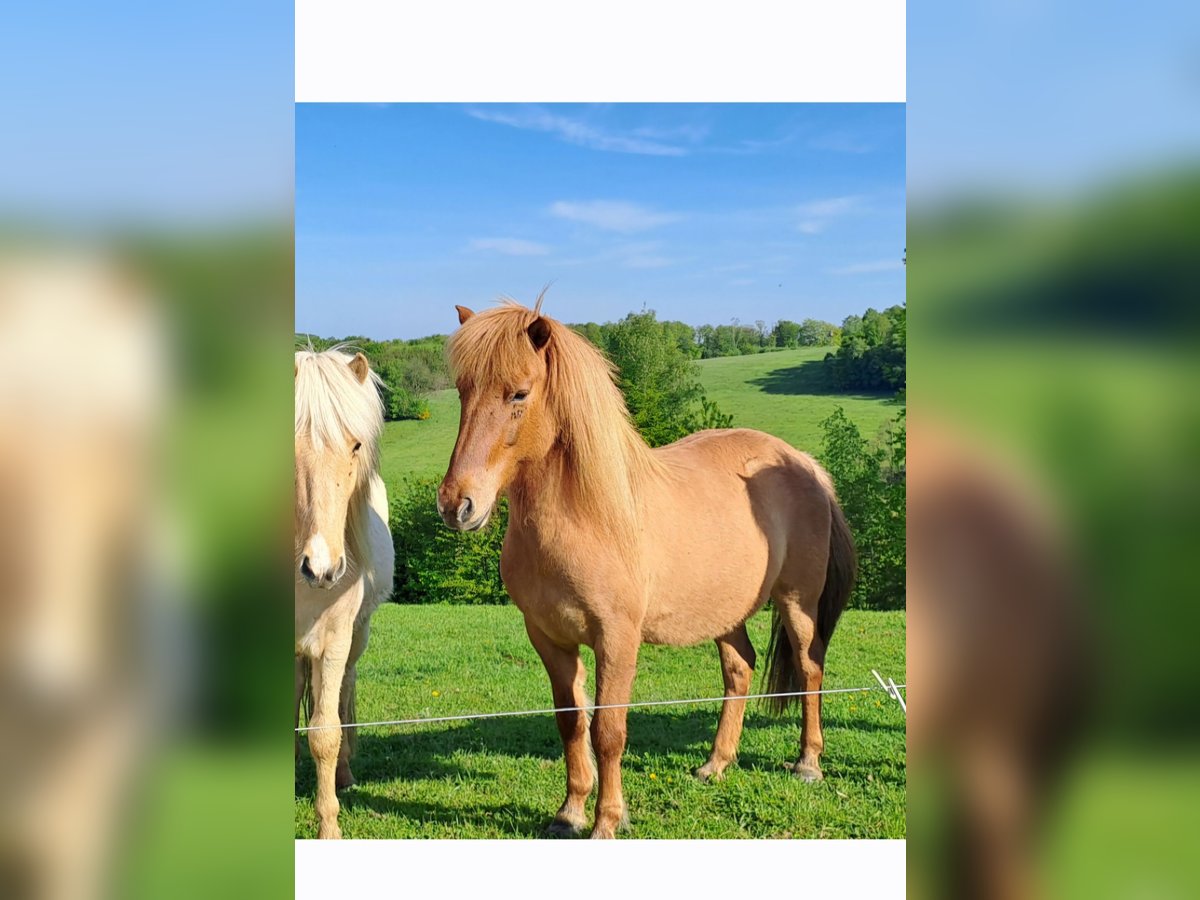 Fokstute *2012, vosbruin, ca. 1,40 m Gezond, geen eczeem V: Midas fra Kaldbak Embla is een zeer vriendelijke en unkompliceerde viergangs ruin. Ze toont haar tölt alleen onder het zadel. Bij ons is ze fokstute. Ze heeft in totaal 5 veulens gehad. Haar nakomelingen hebben, net als zij, een mooie houding. In 2023 werd haar zoon kampioenspringer in Schleswig-Holstein. Ze beschikt over uitstekende basisgangen, een goede stap, een swingende draf en een gesprongen galop. Ze is drachtig van een zoon van de legendarische Sindri fra Hiardatun. Locatie: nabij Keulen