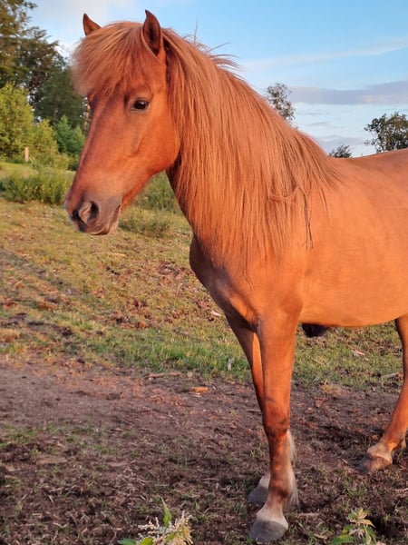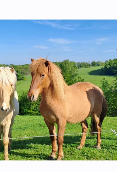 Zuchtstute *2012 , Fuchsfalbe, ca.140m Gesund ,kein Ekzem V: Midas fra Kaldbak Embla ist eine sehr freundliche. unkomplizierte 4 Gang Stute. Tölt zeigt sie nur unter dem Sattel. Bei uns ist sie Zuchtstute. Hatte insgesamt 5 Fohlen. lhre Nachkommen haben, genau wie sie eine schöne Aufrichtung. 2023 ist ein Sohn von ihr Körungssieger in SH geworden. Sie hat sehr gute Grundgangarten,einen guten Schritt, schwungvollen Trab und gesprungenen Galopp. Sie ist tragend von einem Sohn des legendären Sindri fra Hiardatun. Standort Nähe Köln