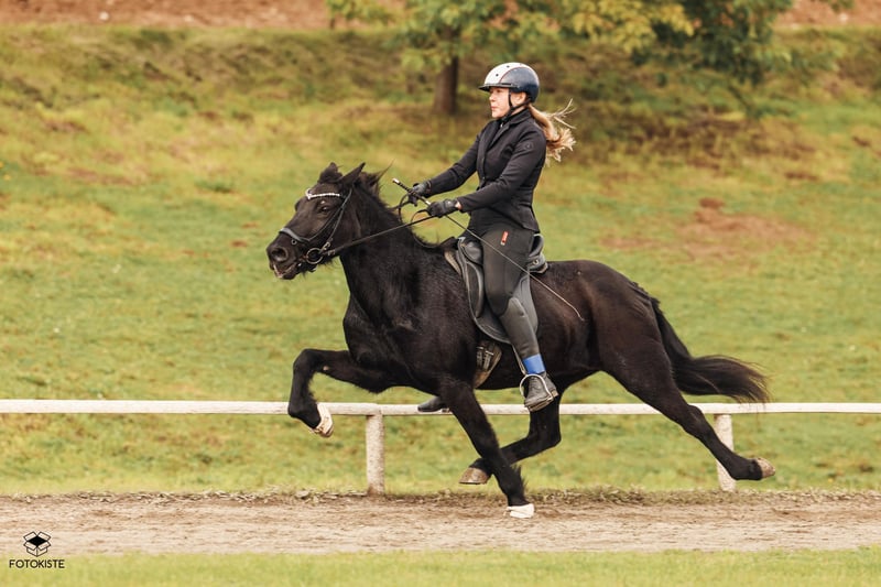 Valka frá Íbishóli – leistungsstark, nervenstark, mit Spaßgarantie! Stute | *2012 in ISL | Rappe ohne Abzeichen | Fünfgängerin / Passpferd Valka ist eine erfahrene, nervenstarke Fünfgangstute mit beeindruckendem Pass und klarer Gangverteilung – perfekt für alle, die ein sicheres Turnierpferd mit Perspektive suchen oder den nächsten Schritt im Sport mit einem verlässlichen Partner machen wollen. Mit ihrer beeindruckenden Abstammung – Vater: Óskasteinn frá Íbishóli Mutter: Sally frá Tumabrekku – bringt sie alles mit, was man sich für Sport und Zucht wünscht. 2024 hat sie ein gesundes Fohlen zur Welt gebracht und zeigt sich damit auch zuchtbewährt und unkompliziert in der Trächtigkeit und Aufzucht. Turniererfolge: F2 mit Endnote 6,19 Passnoten bis 7,5 in Fünfgangprüfungen Diese Leistungen zeigen ihr Potenzial in der Bahn – besonders im Pass, der schnell, sicher und souverän abrufbar ist. Dabei überzeugt sie auch mit einem gut gesprungenen Galopp, einem schwungvollen Trab mir weiten Bewegungen und einem Tölt mit sehr angenehmem Reitgefühl. Valka ist jedoch nicht nur sportlich top, sondern auch ein echtes Verlasspferd im Alltag: - Sicher im Gelände – allein oder in der Gruppe - Unerschrocken & freundlich im Charakter - Verladefromm, brav beim Hufschmied - Problemlos in der gemischten Herde - Regelmäßig geimpft & entwurmt Ob du gemeinsam Turnierluft schnuppern oder einfach ein zuverlässiges und hochwertiges Luxusfreizeitpferd mit Power und Herz suchst – Valka frá Íbishóli ist bereit für neue Herausforderungen. 📍 Standort: Straßwalchen, Reithof Burghauser 📩 Kontakt: reiten@burghauser.at 💰 Preisklasse: 15-20.000€