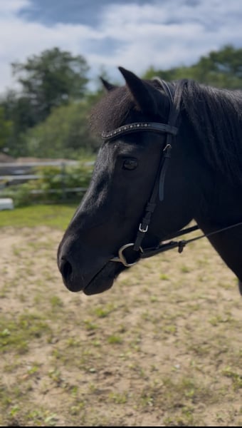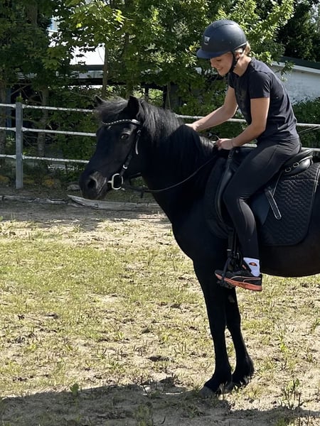 IJslandse merrie Hrapa van Störblick – Hartsvriend zoekt hartsvriend(in) De in 2009 geboren, 131 cm grote vierganger is een gevoelige, intelligente en betrouwbare vrijetijdspartner. Ze reageert op de kleinste hulpen, töltert graag uit zichzelf en is in het terrein absoluut veilig – verkeer, honden of landbouwmachines maken geen indruk op haar. Hrapa kent rijden, handpaardwerk, grondwerk en dubbele longe. Veel oefeningen beheerst ze alleen op stem of lichaamshouding. Ze is hoefsmid- en laadvriendelijk, nieuwsgierig en gemotiveerd. Ze zoekt een ervaren, rustige ruiter (max. 75 kg) die plezier heeft in fijne communicatie en duidelijke leiding. Geen beginnerspaard. Met geduld en vertrouwen zal ze een loyale vrijetijdspartner worden, vooral in het terrein. In 2023 had ze een hoefbevangenheid, die volledig genezen is (röntgenfoto's zijn beschikbaar). Bij aangepaste voeding (hooi- en mineralenvoeding, graanvrij) en voldoende beweging is ze probleemloos te hanteren. Ze is momenteel onbevangen, regelmatig gevaccineerd en ontwormd. Huisvesting: Ze heeft nauw sociaal contact nodig, een box met dagelijkse uitloop of een open stal met weidegang in overleg. Bijgeleverd worden hoofdstel, toebehoren en op verzoek haar passende Massimo-töltzadel (tegen meerprijs). Ze heeft alle papieren en heeft een veulen (2015) gehad.