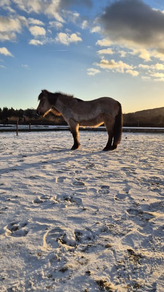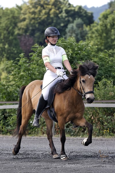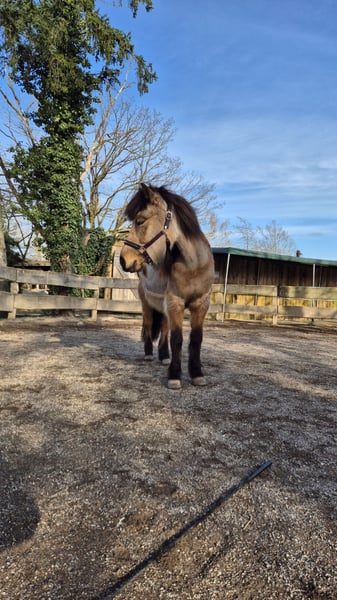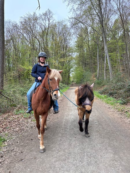 Ik geef mijn bijna 17-jarige IJslandse merrie Spyrna fra Twonby, helaas vanwege tijdgebrek, in verkoop. Ze is sinds 2023 in mijn bezit en heeft sindsdien grote vooruitgang geboekt. Momenteel staat ze in 53604 Bad Honnef, samen met een andere merrie, maar ze is zowel met merries als met ruiners goed te mengen in de kudde. Spyrna heeft al drie veulens gekregen, die allemaal gezond zijn. Ze is een zeer levendig en alert paard dat absoluut NIET geschikt is voor beginners. Ze heeft een ervaren ruiter nodig die haar kan helpen balans en takt te vinden. Zodra je haar eenmaal hebt leren kennen, gaat ze door het vuur voor je. Spyrna is zeer leergierig en gemotiveerd, zowel onder het zadel als bij de grondwerkzaamheden. Ze is absoluut onbevreesd, of het nu op de piste of in het terrein is. Ze is door mij alleen gereden in de vier gangarten (stap, draf, tölt, galop), maar heeft ook aanleg voor de renpass. Ze is echt een geweldig recreatiepaard, maar ik kan me voorstellen dat ze ook veel plezier zou hebben op wedstrijden. Twee zadels en alle andere benodigdheden kunnen graag worden overgenomen. Meer video's kunnen op verzoek worden gestuurd. Als ze je interesse heeft gewekt of als je nog vragen hebt, mag je me gerust een bericht sturen.