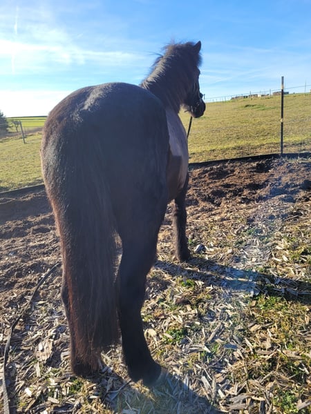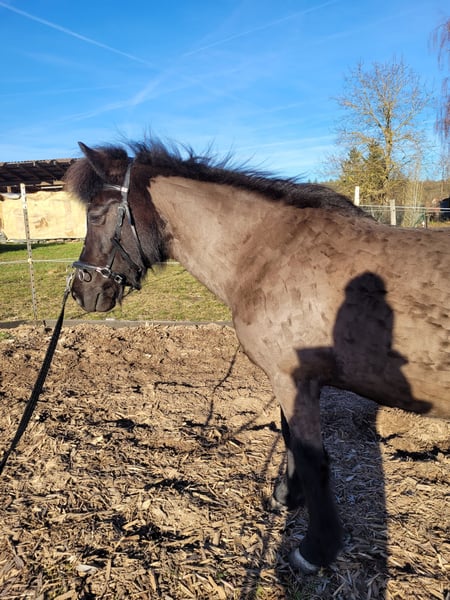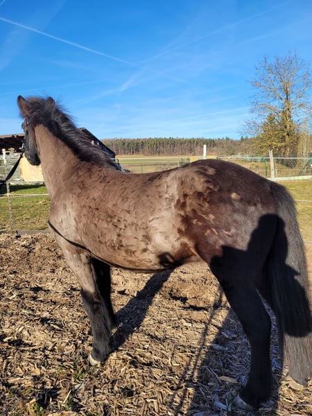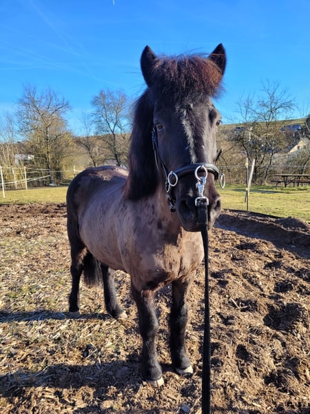 Zum Verkauf steht eine ganz liebe Islandstute, die sowohl im Umgang als auch unterm Sattel absolut brav und zuverlässig ist. Sie ist problemlos von Kindern händelbar und eignet sich daher auch sehr gut als Familien- oder Wiedereinsteigerpony. Die Stute kennt sowohl Boxenhaltung als auch Offenstall. Im Offenstall ist sie rangmittel, geht Streit aus dem Weg und zeigt sich sehr sozialverträglich. Sie ist gesund, hatte kein Ekzem und keine Rehe. Sie besitzt volle Papiere, wurde als Fohlen prämiert, ist regelmäßig geimpft und entwurmt sowie schmiede- und verladefromm. Sie zieht mit ihrem Equipment in ihr neues Zuhause. Kleiner Schönheitsfehler mit Augenzwinkern: Die Kinder haben die Schermaschine für sich entdeckt und es gut gemeint – daher ist sie aktuell etwas fleckig geschoren. Das Hinterteil konnte noch gerettet werde. Auch das Scheren lässt sie völlig problemlos gefallen. Ich habe die Stute vor zwei Tagen zu mir in den Offenstall geholt, da meine Bekannte sie aus gesundheitlichen Gründen dringend abgeben musste. Deshalb übernehme ich die Vermittlung in ihrem Auftrag und beantworte alle Fragen nach bestem Wissen und Gewissen. Es ist ihr sehr wichtig, dass Fremi in gute Hände kommt - daher Platz vor Preis! Bei ernsthaftem Interesse freue ich mich über eine Nachricht.