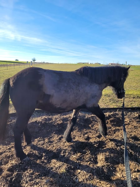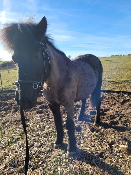 For sale is a very sweet Icelandic mare that is absolutely well-behaved and reliable both on the ground and under saddle. She is easy for children to handle and therefore also very suitable as a family or children's pony. The mare is familiar with both box stall and pasture life. In the pasture, she is dominant but avoids conflicts and is very social and friendly. She is healthy, has never had eczema or laminitis. She comes with full papers, was awarded as a foal, and is regularly vaccinated and dewormed. She is also shoe and loading trained. She will bring her equipment along to her new home. A small cosmetic flaw with a wink: The children discovered the clipping machine and meant well, so she is currently a bit patchy in her coat. The hindquarters could still be saved. She also accepts clipping without any issues. I took over the mare just two days ago from a friend who had to rehome her urgently due to health reasons. I am handling her placement on her behalf and will answer all questions to the best of my knowledge. If you are seriously interested, I look forward to hearing from you.