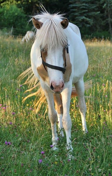 Ik bied mijn bruinvalkwindkleurige merrie uit 2023 aan in geschikte handen, bij voorkeur in maritieme nabijheid, voor een aantrekkelijke prijs. Helaas is ze dit jaar begonnen met schuren en zoekt daarom een andere plek, het liefst een plek met minder muggen of waar men meer tijd heeft voor haar intensievere verzorging. Op dit moment is het nog niet duidelijk of het slechts een groeigerelateerde tekortkoming is, of een stressgerelateerde reactie die aanhoudt. Momenteel krijgt ze een kuur hiervoor en mag daarom ook niet voor de fokkerij gebruikt worden. Ouders en grootouders, evenals halfbroers en -zussen, zijn eczeemvrij, dus het is niet duidelijk waarom en waar het vandaan komt. Met eczeemdeken vertoont ze relatief geen symptomen, deze kan meegegeven worden. Ze is op dit moment geschat op ongeveer 135 cm schofthoogte en goed ontwikkeld voor haar twee jaar, natuurlijk is ze nog niet volgroeid. Qua karakter is ze totaal vriendelijk en relaxed, een potentieel absoluut brave gezins- en recreatiepaard met de optie voor cursussen, buitenritten en meer. Ze toont in de vrije loop duidelijke, goed aanwezige basisgangen met veel ruimte en goede bewegingen. Tölt is soms zichtbaar in de overgang en is goed aanwezig. Ze heeft volledige papieren en haar extravagante kleur is via een gentest bevestigd. Verder is ze gezond en onopvallend, wordt sinds de geboorte regelmatig ontwormd, heeft hoefverzorging gehad, is gevaccineerd tegen tetanus en influenza en staat 24/7 op voer met mineralenvoorziening. Jongpaardmatig gehanteerd, is ze absoluut braaf in de omgang en ook hoefverzorging- en laadvriendelijk. Bij serieuze interesse kan ze graag bekeken en leren kennen worden, de foto's zijn van dit jaar. Verkoop alleen binnen de EU.