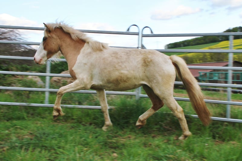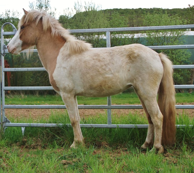 Fagra ist via Gentest bestätigt Braunfalbwindfarbschecke - 2023 geboren überzeugte sie ab Geburt mit gutem ehlichem freundlichem und gelassenem Charakter. Ihr eher ausgeglichenes Temperament rundet ihre positiven Charaktereigenschaften ab. Sie ist jungpferdemäßig Gehändelt - lässt sich immer easy Halftern, steht brav beim Putzen und kennt die regelmäßige Hufpflege, Wumkur und Impfung. Ist in allem sehr unkompliziert und Unartenfrei zusätzlich Hufpflege- und Verladefromm. Als Viergänger bevorzugt sie aktuell ihre gut und sicher vorhandenen Grundgänge , Tölt ist im Übergang zeitweilig zu sehen. Als fast dreijährige Stute befindet sie sich derzeit wieder in einer etwas verwachsenen Phase in der man ihr aber auch deutlich ansieht das sie mit ihrer Entwicklung noch nicht fertig ist. Es wird ein Endmaß um die 139 Stm bei ihre erwartet. Beide Eltern sind geritten und verlässliche Spasspferde für Klein und Groß. Von Fagras bis dato gezeigten Art würde ich sie mit passender Ausbildung als zukünftiges Verlass- Freizeitpferd für Klein und Groß sehen mit Option auf vieles mehr. Gezogen aus Ekzemfreien Eltern hat sie sich leider letztes Jahr mit Schubbern angefangen und es besteht leider die Option das sie Ekzem hat. Sie hatte letztes Jahr schon eine Decke an und ist damit recht gut zurecht gekommen, auch das anziehen macht sie brav mit, zudem macht ihr das einsprühen mit einer Sprühflasche absolut nichts aus und steht brav. Sie hat bis dato keine anderen Krankheiten oder gesundheitliche Einschränkungen gezeigt. Daher wird sie günstig an geeigneten Platz abgegeben wo man die benötigte Zeit für ihre Pflege hat, da mir dies leider zeitlich nicht in dem Rahmen möglich ist wie es effektiv für sie wäre. Gerne kann sie angeschaut werden, ein Video gibt es nicht und wird es auch nicht geben- vorbei kommen und Kennenlernen, die Fotos sind aktuell. Bei Kaufabsicht kann der Käufer gerne vom Wunsch TA eine Aku machen lassen. Fagra kann jederzeit in ein neues Zuhause umziehen.