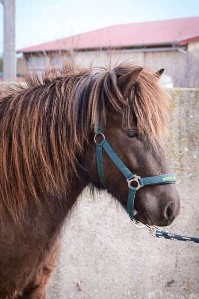 Merrie, IJslands paard, geboren 08.05.2023 Vader: Tveggi vom Grenzstein Vader: Tangó vom Melinokus FOKKER: Þróttur frá Hvalnesi 8.34 VMV: Frosti frá Heiði 8.22 M: Nauma vom Semriach (Stamboek 1) MV: Selur vom Lipperthof 8.03 zonder paspoort MMV: Náttfari frá Ytra-Dalsgerði 8.54 Nova is geboren op 08 mei 2023 en groeit op in een kudde. Ze knuffelt graag met mensen en wordt regelmatig ontwormd en krijgt mineraalsupplementen. Ze kan al halster- en hoefbekappen en is volledig ingeënt. Nova heeft al in een trailer gereden en is dapper als het op nieuwe dingen aankomt. Ze is goed ontwikkeld, groot en sterk gebouwd. In de wei toont ze goede basisgangen en veel tölt in de overgangen. Haar kleur wordt Smokey Black of Rappisabell genoemd, dat wil zeggen dat ze zwart is met een crème gen, wat haar haar mooie chocolade kleur geeft. Haar moeder was jarenlang een rijpaard, werd viervoetig bereden met veel aanleg voor dressuur met sterk geaccentueerde bewegingen. Dit is haar tweede veulen en ze bewijst een uitstekende fokmerrie te zijn, niet in de laatste plaats door haar sterke genetische achtergrond. Nova's vader is een jonge hengst met een goede afstamming, vijf gangen, die momenteel wordt ingereden. Hij toont zich heel gemakkelijk en meewerkend met goed gescheiden gangen en heel goed zelfhouding. Nova werd zeer goed beoordeeld op de IPZV veulenkeuring: Model 8,0 Interieur 8,0 Versnelling 7,8 Oordeel jury: Zeer goed ontwikkeld veulen met zeer goede actie en vermogen, veel snelheid in draf, met een iets voorwaarts zwaartepunt op het moment, toonde tölt in de overgang. Alle paden liggen voor haar open en ze heeft alles wat je je kunt wensen in een toekomstige rijpartner. Maar ze zou ook interessant zijn voor de fokkerij. Nova kan op elk moment naar haar nieuwe thuis verhuizen.