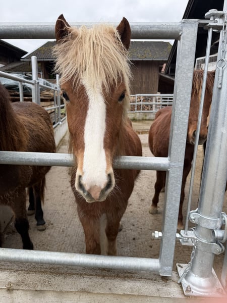 Blesa von Heiming *2023 Vater: Valgarð frá Kirkjubæ (Gesamt 8,70) Mutter: Hrós frá Slippen (Gesamt 8,02) Blesa ist eine junge Fünfgang Stute. Sie zeigt ganz viel Tölt und feinen Reaktionen. Ihre Eltern sind Elite geprüft und stammen beide aus Ehrenpreis Eltern ab, sowohl Mutter als auch Vater. Blesa ist roh, ist Halfterführig und kennt das Fohlen ABC. Sie wächst Artgerecht im Herdenverband auf und kann auch weiter zur Aufzucht bei uns bleiben. Leider ist sie nicht die größte, deswegen wird sie weit unter ihrem eigentlich Wert verkauft.