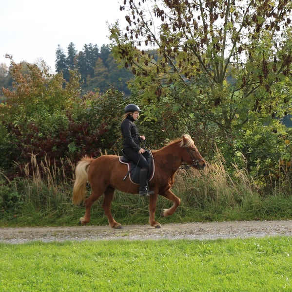 Zum Verkauf steht die 4,5 jährige, 5gängige Islandstute Maistjarna. Sie ist deutsch gezogen. Mit ihrem stimmigen, stabilen Gebäude, einer tollen Oberlinie und ihrer wunderschönen Farbe, ist sie ein echter Hinkucker. Auch ihr Charakter ist eine 12/10! Körperlich ist sie nicht die Größte, fühlt sich aber an wie ein "richtiges Pferd". Ich schätze sie auf ca. 1,37m, wobei sie aktuell noch wächst! Stabil gebaut! In der Herde ist sie absolut unkompliziert und eher rangniedrig. V: Krani frá Hofi Sie ist erst seit kurzem (Ende August) unter dem Sattel und begeistert seit dem 1. Training mit ihrer unkomplizierten, lerwilligen Arbeitseinstellung. Die Stute wird auf dem Platz und im Gelände (auch alleine!) aktuell 4gängig geritten. Die Gänge sind problemlos abrufbar Sie zeigt sich gut ausbalanciert, mit viel Takt und Fluss in allen Gangarten. Ein absolutes Sofa! Besonders viel Freude bereitet ihr endloser Tölt. Diesen zeigt sie, trotz der sehr kurzen Zeit unter dem Sattel, bereits problemlos am losen Zügel (siehe Bilder). Maistjarna verfügt über mittleres Temperament, will immer gefallen und ist absolut kopfklar! Auch für schwächere Reiter geeignet. Geht brav mit Kindern an der Longe oder Spazieren. Aktuell ist sie UNBESCHLAGEN und zeigt bereits, dass da noch ganz viel Luft nach oben ist! Wir konnten hier keinerlei Unarten festellen. Maistjarna zeigt keine Anzeichen von Ekzem. Sie ist Tetanus und Influenza geimpft Sie lernt alles kennen was ein junges Pferd kennen muss : -Verladen -Ausschneiden -Kühe -Schafe -Hunde -Kinder -Longieren -Handpferdereiten -Stangen -Doppellonge Maistjarna hat ein Herz aus Gold und verdient ein 5****Zuhause! Ob für die Zucht (hatte bereits 1 Fohlen), Turnier oder einfach endloses Durch-den-Wald-tölten, Maistjarna deckt alles ab! Wer einen kopfklaren Allrounder mit viel Herz sucht, ist hier genau richtig. Vorbei kommen und verlieben! Ich wünsche mir für sie ein gutes Zuhause, in dem sie geschätzt wird! Bei weiterer Ausbildung steigt der Preis.