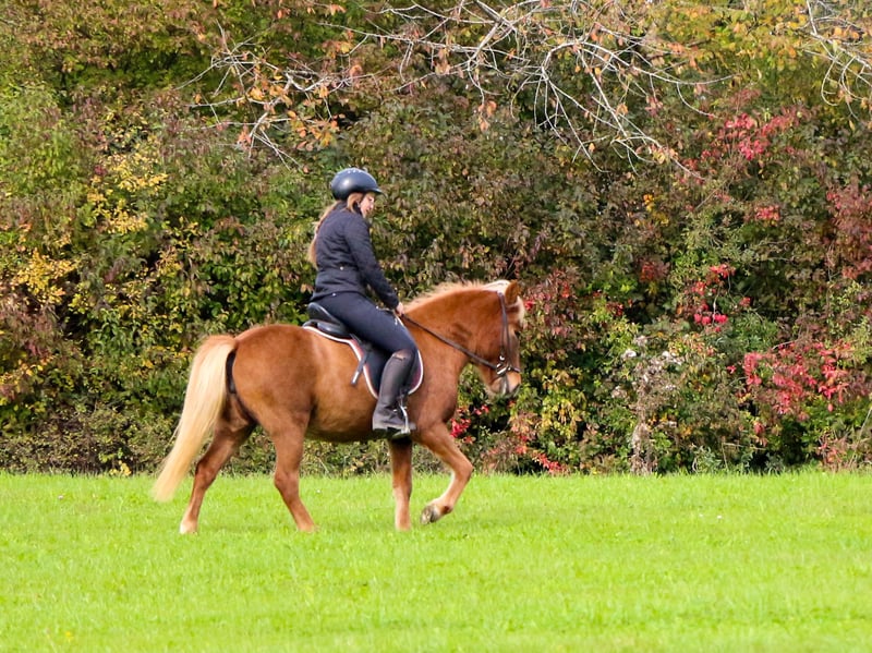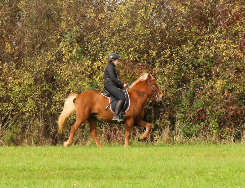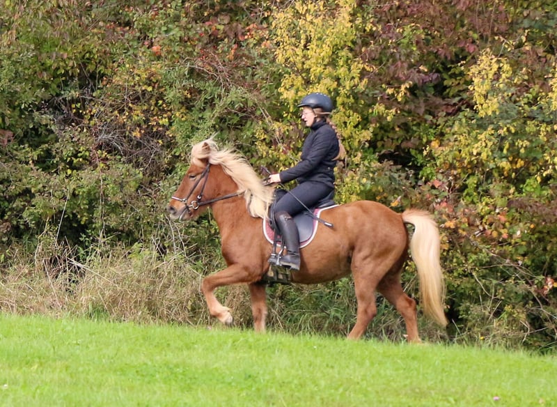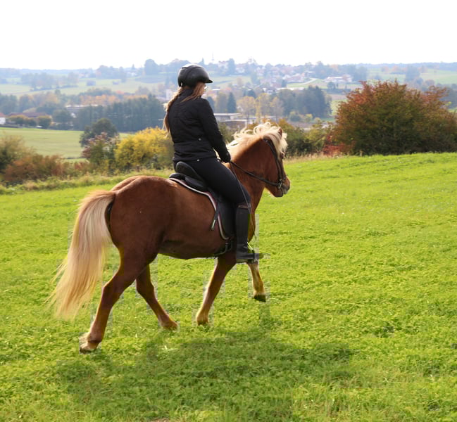 Zum Verkauf steht die 4,5 jährige, 5gängige Islandstute Maistjarna. Mit ihrem stimmigen, stabilen Gebäude, einer tollen Oberlinie und ihrer wunderschönen Farbe, ist sie ein echter Hinkucker. Auch ihr Charakter ist eine 12/10! Körperlich ist sie nicht die Größte, fühlt sich aber an wie ein "richtiges Pferd". Ich schätze sie auf ca. 1,37m. V: Krani frá Hofi Sie ist erst seit kurzem unter dem Sattel und begeistert seit dem 1. Training mit ihrer unkomplizierten, lerwilligen Arbeitseinstellung. Die Stute wird auf dem Platz und im Gelände (auch alleine!) aktuell 4gängig geritten. Die Gänge sind problemlos abrufbar Sie zeigt sich ausbalanciert, mit viel Takt und Fluss in allen Gangarten. Ein absolutes Sofa! Besonders viel Freude bereitet ihr endloser Tölt. Maistjarna verfügt über mittleres Temperament, will immer gefallen und ist absolut kopfklar! Aktuell ist sie UNBESCHLAGEN! Wir konnten hier keinerlei Unarten festellen. Maistjarna zeigt keine Anzeichen von Ekzem. Sie ist Tetanus und Influenza geimpft Sie lernt alles kennen was ein junges Pferd kennen muss : -Verladen -Ausschneiden -Kühe -Schafe -Hunde -Kinder -Longieren -Handpferdereiten -Stangen Maistjarna hat ein Herz aus Gold und verdient ein 5****Zuhause! Ob für die Zucht (hatte bereits 1 Fohlen), Turnier oder einfach endloses Durch-den-Wald-tölten, Maistjarna deckt alles ab! Wer einen kopfklaren Allrounder mit viel Herz sucht, ist hier genau richtig. Maistjarna kann gerne noch zur weiteren Ausbildung hier bleiben. Vorbei kommen und verlieben!