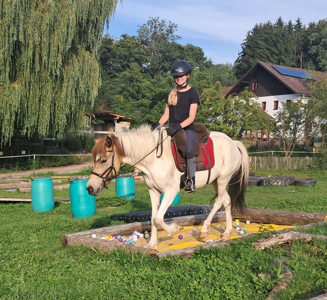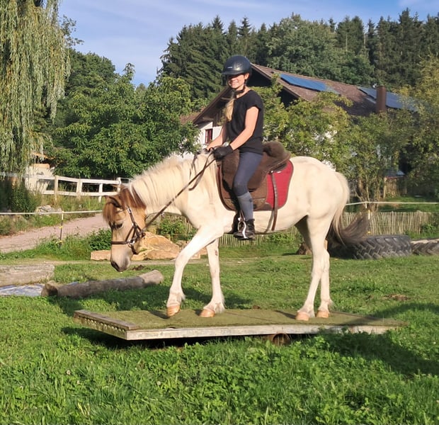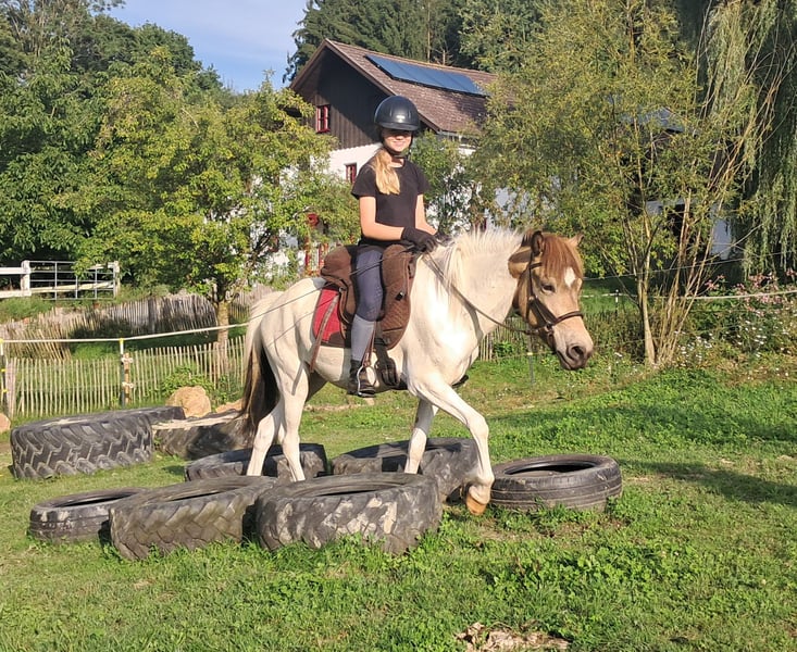 Cool, cooler, Fjalla! Bei dieser Ponystute geht jedem das Herz auf! Wunderschöne Farbe kombiniert mit Traumcharakter und fabelhaften, taktreinen Gängen, toller Tölt vorhanden auch unter dem Sattel. Ein Taumpony aus Deutschland absolut robust und ekzemfrei, bestens sozialisiert. Extrem cool und gelassen, für jeden Spaß zu haben, mit Familienanschluss aufgewachsen, liebe voll ausgebildet. Hufschmied, Anhänger fahren, alleine spazieren gehen ... alles kein Problem, nun bereit für die große weite Welt mit dir, Abstammungsnachweis vorhanden, vorbei komme und verlieben, aktuell 137 cm, 3 1/2 Jahre. Für Wander-, Gelände-, Freizeit und Therapiereiten. Englisch und Western ist beides möglich. Offenstall und Herdenhaltung gewöhnt, Box ist auch kein Problem. Equidenpass vorhanden. Alle unsere Pferde kennen Bodenarbeit, unterschiedliches Gelände, Autos, landwirtschaftliche Maschinen, sowie Kühe, Esel, Schafe, Schweine, Hunde, Katzen und Hühner. Infos und Terminabsprache unter 08536-2890292 (AB vorhanden) oder 0157-78378455 (am Hof kein Mobilnetz). Bitte keine PN, Mail und WhatsApp Anfragen!! Sonntag Ruhetag. Zubehör und Transport günstig möglich. Jedem Kunden wird ein vertraglich festgesetztes Umtauschrecht von 6 Wochen eingeräumt. Preise sind Festpreise. Keine Anfragen auf Ratenzahlung erwünscht. Wer gleich mit Anhänger kommt und mitnimmt erhält 100€ Rabatt. Bei Kauf werden 1000€ in bar als Anzahlung fällig. Wer das Pferd gleich mitnehmen will, muss selbstverständlich komplett bezahlen. Wir absolvieren mit den Kunden einen Ausritt mit zwei Pferden Eurer Wahl, damit Ihr Euer Traumpferd kennenlernen und prüfen könnt ob es das richtige Pferd für Euch ist. Jeder Termin kostet 35€, egal ob reiten, vorreiten, bereitstellen, spazieren ... jeder weitere Reiter (Freundin, Freund, Schwester, Trainer...) bezahlt das selbe wenn er mitreitet, nur mal schauen kostet uns auch Zeit und somit 20€. Der Betrag wird beim Kauf eines Pferdes am selben Tag wieder erstattet. Aufgrund mehrfacher Vorkommnisse bitten wir darum wahrheitsgemäße Angaben über das Reitergewicht zu machen. Bei nicht wahrheitsgemäßen Angaben behalten wir uns vor, uns vor Ort gegen einen Proberitt zu entscheiden. Unseren Pferden zu Liebe möchten wir auch unseren gut gebauten Pferden nicht mehr als 120kg zumuten. Da es sich hierbei um ein lebendes Tier handelt, sind dies lediglich Eindrücke des Betreuers und keine zugesicherten Eigenschaften des Pferdes. Weitere Pferde/Ponys in meinen anderen Anzeigen oder auf Anfrage