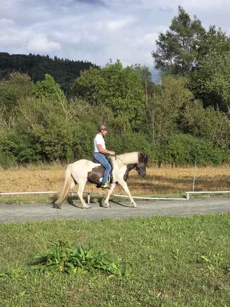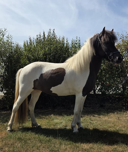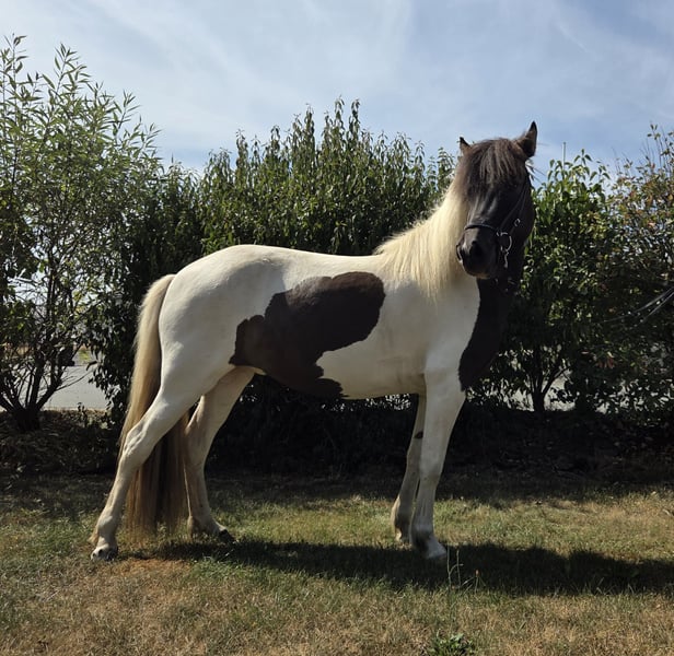 **Verkaufsanzeige: Wunderschöne Islandpferd-Stute zu verkaufen!** Wir suchen ein neues Zuhause für unsere bezaubernde Islandpferd-Stute! **Merkmale:** - **Rasse:** Islandpferd - **Geschlecht:** Stute - **Geburtsjahr:** 2021 - **Farbe:** Rappschecke (obwohl Braunschecke im Papier steht) - **Stockmaß:** 138 cm, wächst noch ein wenig - **Gang:** Ausgezeichnete Gangarten, kann bei weiterer Ausbildung auch Turnier gehen Diese charmante Stute besticht durch ihr freundliches Wesen und ihre Neugier. Sie ist gut im Umgang und eignet sich sowohl für erfahrene Reiter als auch, bei weiterer Ausbildung, für eine Familie. Die Stute hat bereits einiges an Erfahrungen im Gelände gesammelt und zeigt sich dabei stets brav und gelassen. Ijre Nervenstärke ist herausragend. Ihre Scheckenfarbe macht sie zu einem echten Hingucker! Bei Interesse melden Sie sich gerne. Es gibt auch ein gerittenes Video.