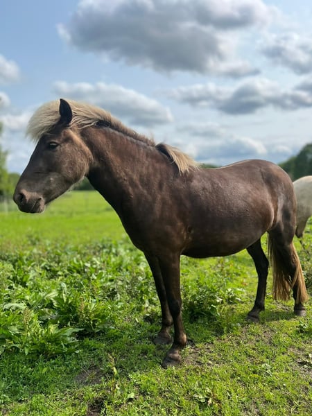 Saeta by Seimur, last daughter of the legendary Vinda vom Adlerhop and the elite stallion Stakkur by Seimur. Her siblings are all just as great as she is! A very fine character and character, for the color wind-colored, rather unusual! Her color is called brown-silver (brown wind colors). She has a 5-color disposition and is expected to reach a final height of approx. 1.44m. Suitable for sport, leisure and breeding. Saeta is a treasure, whoever wants her must be very special, because she is looking for her human. She also stands in the young mare pasture 1 - 4 years old and next to the young stallions. More details via PN or in person.