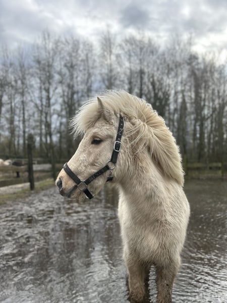 Beautiful young Icelandic mare in a special Isabell color seeking an experienced home. She is four years old and still has a lot to learn – a true diamond in the rough for someone with patience and experience in handling young horses. She currently measures 1.40 m, is well-behaved when grooming, tacking up, leading, and is happy to give her hooves. She has not received much training yet, as she only arrived from Iceland in December 2024. She is likely five-gaited, with her current focus mainly on trot and canter. With proper training, she will undoubtedly become a very special riding horse for the advanced leisure rider.