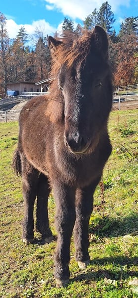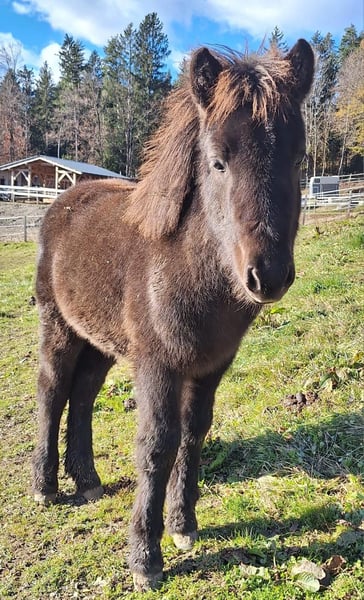 Beautiful, 1-year-old, Icelandic black filly, very trusting, with good pedigree, for sale. For further information please call +43 664 132 4047, delivery possible!