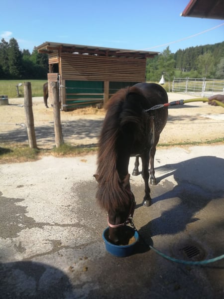 Naela ist eine wunderschöne, menschenbezogene Jungstute, gerade 4,5 Jahre alt und bereit, die Welt kennen zu lernen. Die ersten 2 Jahre durfte sie in einer gemischten Jungpferdeherde auf einer großen Fohlenweide aufwachsen. Sie steht nun in gemischter Gruppe und kennt bereits Bodenarbeit, Longieren im Schritt und Trab und hat schöne, klar getrennte Gänge. Sie bewegt sich leichtfüßig und gerne und ist dabei immer wach und gerne in Kontakt mit "ihrem" Menschen. Ihr Vater ist Kjarkur fra Skridu, 2017 WM 4.Platzierter mit Reiteignung 8.53 Naela ist absolut korrekt gebaut, im alten Typ stehend und gut bemuskelt, Breite Brust und ein sehr gutes Röhrbein. Sie ist sehr gelehrig, liebt geistige Herausforderung und ist bestimmt ein absolut toller Freizeit-Partner, die mit ihrem Menschen durch dick und dünn geht. Durch ihre Neugier und Zugewandheit können wir sie uns auch gut in der Therapie-Arbeit oder vor der Kutsche vorstellen. Sie wird sicher kein Riese, hat aber ein sehr gutes Fundament und wird mit der richtigen Ausbildung und Erfahrung ein wunderschönes Traumpferd. Derzeit hat sie ein Stockmaß von 133cm und wird wahrscheinlich ca. 136cm erreichen. Ihr Vollbruder zeigt sich hervorragend unterm Sattel und steht ebenfalls am Stall. Sie ist brav beim Schmied, (geht barfuß), kennt Hänger fahren und Tierarzt. Abgabe nur in allerbeste Hände, keine Reitschule, keine Anfänger. Preis ist Verhandlungssache, wenn alles passt. Natürlich nur in Offenstall- oder Aktivstallhaltung. Wenn Naela dich begeistert, melde dich gerne, wir suchen für sie die passenden liebevollen Menschen, vielleicht ja dich? Stute steht bei Iffeldorf.