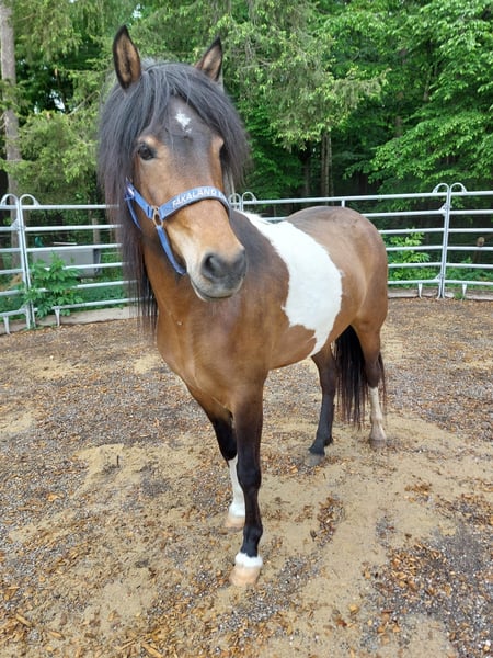 Brák ist eine 2021 geborene Islandpferd-Stute (Braun-Schecke) mit aktuell ca. 1,40 m Stockmaß (noch nicht ausgewachsen). Sie stammt aus hochwertiger Zucht und steht derzeit in Ulm. Altersgerecht befindet sich Brák mitten in der Ausbildung. Sie wurde schonend angeritten und kennt unter dem Reiter alle Gänge: Schritt, Tölt, Trab und Galopp. Rennpass ist bei ihr möglich, wird aktuell aber noch nicht gezielt und gesichert abgefragt. Sie arbeitet regelmäßig mit, lernt schnell und zeigt für ihr Alter schönes Gangpotenzial. Im Charakter ist Brák eine sehr liebe, verschmuste und menschenbezogene Jungstute. Sie ist neugierig, entdeckt gerne Neues und wirkt manchmal noch wie ein kleiner Träumer. Altersentsprechend lässt sie sich gelegentlich ablenken, bleibt dabei aber gut händelbar. Sie ist superlieb beim Hufschmied und Tierarzt und war bereits zweimal problemlos im Hänger unterwegs. Für ihre weitere Entwicklung wünschen wir uns einen erfahrenen, feinfühligen Menschen, der Freude daran hat, sie konsequent und liebevoll weiter auszubilden. Brák ist vollständig geimpft, regelmäßig entwurmt und ekzemfrei. Abstammung: Vater: Bliki frá Hjardarholti, FEIF-ID IS2006136481, FIZO 2014: 8,18. Mutter: Björg frá Ey I, FEIF-ID IS2009284728. Züchterin: Jana Füss. Papiere und weitere Infos zur Abstammung können bei Interesse gerne eingesehen werden. Verkauf ausschließlich in fördernde, liebevolle Hände als zukünftiges Freizeit- und Familienpferd. Preisvorstellung: 9.500 € VB. Weiteres Zubehör nach Absprache. Bei ernsthaftem Interesse sende ich gerne zusätzliche Fotos und Videos. Standort: Ulm