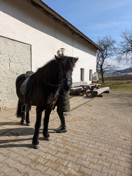 Wunderschöne Islandstute aus unserer Zucht zu verkaufen! Snugga vom Hahnenberg hat sehr viel: - gesund, kräftig -groSs 142 cm - viel Tölt -altersgerecht und schonend angeritten -kennt Halle, Ovalbahn ,Gelände - fleißiges Vorwärts, immer regulierbar - Bildhübsch - sehr gute Abstammung