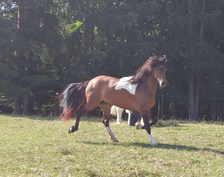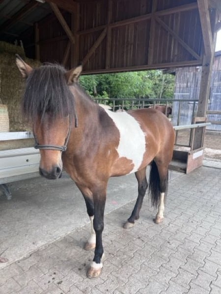 Brák ist eine 2021 geborene Islandpferd-Stute (Braun-Schecke) mit aktuell ca. 1,45 m Stockmaß (noch nicht ausgewachsen). Sie stammt aus hochwertiger Zucht und steht derzeit in Ulm. Altersgerecht befindet sich Brák mitten in der Ausbildung. Sie wurde schonend angeritten und kennt unter dem Reiter alle Gänge: Schritt, Tölt, Trab und Galopp. Rennpass ist bei ihr möglich, wird aktuell aber noch nicht gezielt und gesichert abgefragt. Sie arbeitet regelmäßig mit, lernt schnell und zeigt für ihr Alter schönes Gangpotenzial. Im Charakter ist Brák eine sehr liebe, verschmuste und menschenbezogene Jungstute. Sie ist neugierig, entdeckt gerne Neues und wirkt manchmal noch wie ein kleiner Träumer. Altersentsprechend lässt sie sich gelegentlich ablenken, bleibt dabei aber gut händelbar. Sie ist superlieb beim Hufschmied und Tierarzt und war bereits zweimal problemlos im Hänger unterwegs. Für ihre weitere Entwicklung wünschen wir uns einen erfahrenen, feinfühligen Menschen, der Freude daran hat, sie konsequent und liebevoll weiter auszubilden. Brák ist vollständig geimpft, regelmäßig entwurmt und ekzemfrei. Abstammung: Vater: Bliki frá Hjardarholti, FEIF-ID IS2006136481, FIZO 2014: 8,18. Mutter: Björg frá Ey I, FEIF-ID IS2009284728. Züchterin: Jana Füss. Papiere und weitere Infos zur Abstammung können bei Interesse gerne eingesehen werden. Verkauf ausschließlich in fördernde, liebevolle Hände als zukünftiges Freizeit- und Familienpferd. Preisvorstellung: 9.500 € VB. Weiteres Zubehör nach Absprache. Bei ernsthaftem Interesse sende ich gerne zusätzliche Fotos und Videos. Standort: Ulm