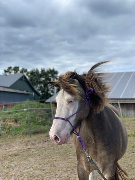 Eydes vom Terlindenhof, een 5-jarige merrie, wordt momenteel zadelmak gemaakt. Ze is erg mensgericht en wordt vermoedelijk viergangig aangelegd. Eydes is een zeer rustige jonge merrie die haar mens graag wil behagen. Ze zal heel gemakkelijk te rijden zijn, gaat ontspannen mee het terrein in en is geschikt voor recreatie en fokkerij. Haar bijzondere lakering is vooral opvallend, omdat deze zeldzaam is bij helmschecken. Wie Eydes graag wil leren kennen, kan haar te allen tijde komen bezoeken of meer informatie krijgen via een privébericht. Let op! Bij kredietcontrole bieden wij, bij een aanbetaling, ook de mogelijkheid tot gespreide betaling.