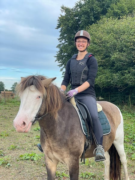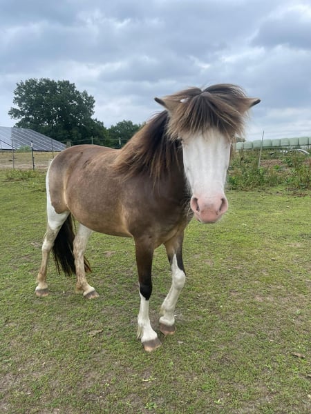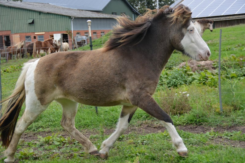 Eydes vom Terlindenhof, jument de 5 ans, elle est actuellement en cours de débourrage. Très attachée aux humains, elle est probablement dotée d'une aptitude à être 4 gaits. Eydes est une jeune jument très calme, qui souhaite plaire à son cavalier. Elle sera très facile à monter, sort en extérieur de manière détendue et convient pour les loisirs et l'élevage. Il convient de souligner sa robe particulière, qui est très rare, notamment chez les chevaux à taches de casque. Quiconque souhaite faire la connaissance d'Eydes peut venir la visiter à tout moment ou obtenir plus d'informations par message privé. Attention ! Lors de l'évaluation de la solvabilité, nous proposons également un paiement échelonné avec un acompte.