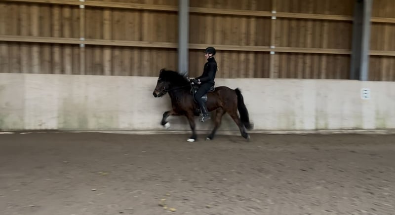 Sprengja ist eine sehr hübsche, fünfgängig veranlagte Stute, die wirklich einfach zu reiten ist und immer Spaß macht. Obwohl sie noch sehr jung ist geht sie routiniert und unerschrocken alleine und mit anderen ins Gelände. Sie hat alle 5 Gänge einfach abrufbar mit guter Gangtrennung. Wir sehen sie als tolles Freizeitpferd und auch Turnierpferd bei entsprechender Förderung.