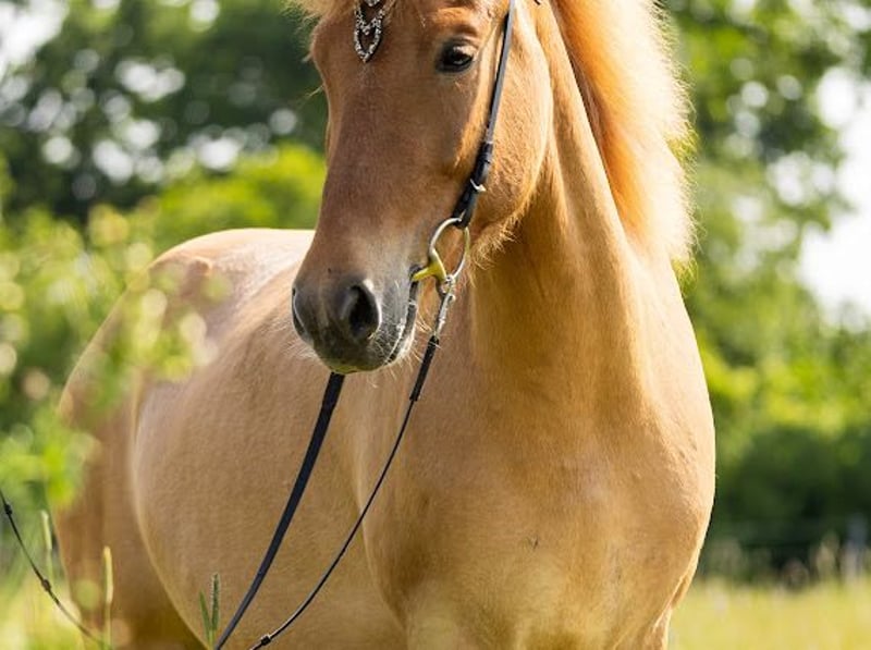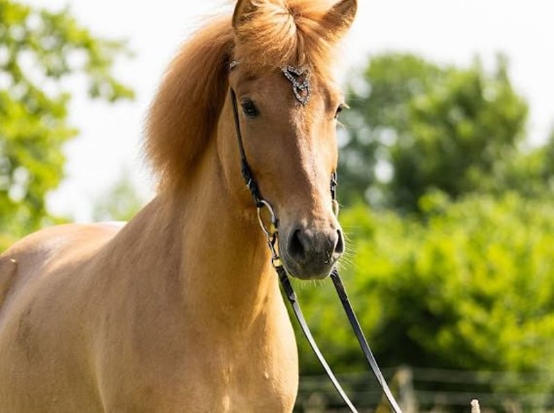 Description : Highly talented five-gaited mare with a calm, very manageable temperament and beautiful, expressive movements. She is ready to start directly and can compete in futurity competitions as a five-year-old. Exterior : Blika has a very good conformation with long lines and elegant proportions. Character : Blika is always open and friendly towards humans and everything around her. She approaches new situations with confidence and fearlessness. She is eager to work and is the first to come when you enter the paddock. Gaits : Blika is five-gaited. Her tölt has already been tested, although she has not been extensively trained for it due to her age, but there is definitely a lot of potential. She offers a very easy, rhythmically clear tölt with beautiful, expressive, large movements. She already demonstrates high-speed capacity in tölt and can perform a flying change. Her basic gaits are also beautiful and can be ridden in an appealing form at any time. Training level : Blika has completed her basic training. She responds well to aids and can be ridden alone or in a group on all arenas and in the field. She has already participated in her first competition, where she was presented in the four-gait and tölt classes in futurity and performed well and effortlessly. Who suits me : Due to her size, Blika is suitable for larger riders. Her fearless and uncomplicated nature makes her perfect for a young rider looking for a horse to start their competitive career, but she can also keep up in adult competitions. Thanks to her wonderful character, we also see her as a great leisure partner—truly an all-rounder. Sire : Exceptional five-gaited stallion. Three-time World Championship participant. Naddur vom Schluensee is a large, elite-approved Fizo stallion with a striking dark coat, who has already proven his outstanding quality at numerous national and international championships. He competed at the World Championships in 2015 and 2017. Not only has he been successful himself, but his offspring also boast championship titles, including the German Tölt Champion Náttrun vom Forstwald. Additionally, Naddur has an exceptionally friendly character, which he passes on to his progeny. Care condition : Like all horses bred at Kranichtal, Blika is free of eczema and comes from eczema-free bloodlines. Other : She can be viewed and tested ridden at any time.