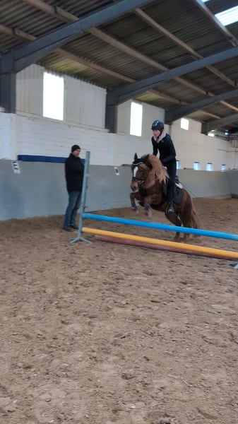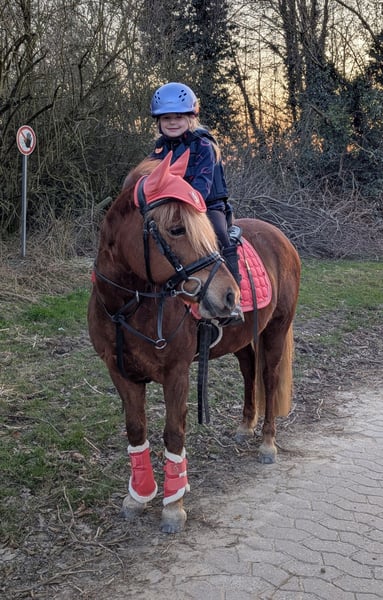 Hallo ihr Lieben, wir geben wegen Umstieg aufs Großpferd unsere fast 7 jährige Stute ab. Sie ist ca. 1,33m groß. Nala ist im Umgang ein Schatz und dem Menschen total zugewandt und immer für Streicheleinheiten zu haben. Hier lässt sie sich auch gern von den kleinsten Menschen verwöhnen. Bodenarbeit, Longenarbeit, Stangenarbeit und auch Doppellonge macht sie alles toll mit und hört super gut auf Stimme. Sie wurde bisher freizeitmäßig geritten. Zur Zeit reitet sie ein 15 jähriges Mädchen. Nala deckt gut ab, die RB ist 1,69m groß. Im Gelände ist Nala einfach Klasse. Dort ist sie sehr brav in allen 3 GGA und zeigt sich unerschrocken und immer verlässlich. Sie kennt auch Reiterrallyes und sie ist schon bei einer Hochzeit mitgeritten. Ich sehe Nala auch eher als Freizeitpferd hauptsächlich im Gelände. Ich könnte sie mir auch sehr gut vor der Kutsche vorstellen. Ihre Mama lief im Kutschsport. Nala ist nicht für reine Anfänger geeignet. Sie benötigt beim reiten auf dem Platz oder in der Halle schon ein etwas erfahrenen Reiter, da hier sonst der Ponydickkopf gewinnt. Geführt oder auch an der Longe können auch etwas kleinere Kinder platz nehmen. Im Gelände trägt sie aber auch ungeübtere Reiter brav übers Feld. Auch in allen 3 GGA. Sie macht auch einen netten Sprung. Bisher 70cm. Nala ist sehr sozial anderen Pferden gegenüber. Sie kennt Boxenhaltung mit Ausgang und auch Offenstallhaltung. Wir wünschen uns für unsere Nala ein tolles zu Hause, in dem sie die Aufmerksamkeit und sozialen Kontakte bekommt wie sie es benötigt. Sie ist kein Sportgerät!! Bei uns war sie bisher nie krank. Eine AKU kann selbstverständlich von eurem eigenen Tierarzt auf eure Kosten gemacht werden. Bitte stellt euch doch bei Interesse gerne kurz vor.