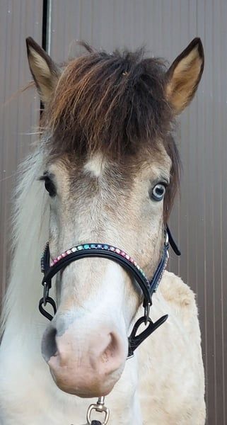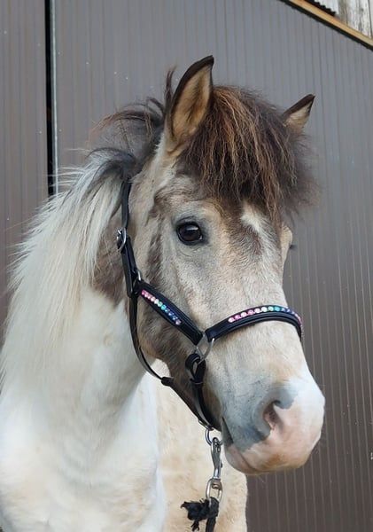 Fegurdardis ist bei mir geboren, war immer gesund, Ekzemfrei, ist gut sozialisiert aufgewachsen, war kurze Zeit in der Zucht und überzeugte mit sehr ansprechender Nachzucht. Da ich meine Pferde reduziere wurde sie dieses Jahr im Sommer angeritten, stand dann leider aus Zeitmangel wieder auf der Weide und wird seit kurzem wieder weiter Ausgebildet. Sie sucht ein Zuhause in dem man sie weiter Ausbilden und Fördern möchte. Bis dato wurde sie auf Vertrauensbasis angeritten. Zurzeit wird sie kurze Einheiten alleine ins Gelände in Schritt und Trab geritten. Sie ist dabei relativ gelassen und unerschrocken, reagiert sehr gut auf Stimmhilfen zum Gangwechsel und auch die Bremse funktioniert perfekt. Noch ist sie Barhuf, aber aufgrund der bescheidenen Wegesituation ist dies bei mir dauerhaft nicht möglich. Mit weiterer Ausbildung und Routine wird sie ziemlich sicher ein gehobenes Familienfreizeitpferd, welches auch für Kinder geeignet sein wird, mit Optionen auf Kurse, Wanderritte, Therapie, Sport etc.. Auch ein erneuter Zuchteinsatz ist jederzeit möglich. Fegurdardis bringt eine gute Größe von um die 139 Stm mit. Sie hat ein sportliches Exterieur mit robustem Fundament so das sie mich mit 75 kg sehr gut und ohne Probleme abdeckt. Ganglich ist sie Fünfgangveranlagt, es wurden schon alle Gänge Freilaufend gesichtet. Meistens bevorzugt sie ihre drei gut und sicher vorhandenen Grundgänge. Tölt ist öfters mindestens im Übergang zu sehen und auch beim Reiten manchmal schon etwas bei Gangwechsel zu merken, sie ist noch nicht eingetöltet und wählt zurzeit von sich aus unter dem Reiter den Trab. Was in der jungen Ausbildungsphase absolut okay ist, zudem finde ich den Trab bequem und gut zu sitzen. Pass wurde auch Freilaufend schon gesichtet ist aber nicht ihr favorisierter Gang. Daher kann lediglich im Galopp je nach Gelände manchmal die Fünfgangveranlagung erahnt werden. Charakterlich ist sie einfach ein unkomplizierter unartenfreier und gelassener braver Schatz. Steht brav beim Putzen und Aufzäumen, lässt sich Problemlos auch in den Pferdeanhänger Verladen und darin Fahren. Gibt brav Hufe, ist artig beim Tierarzt für Impfen und Tupferprobe. Und auch entwurmen lässt sie sich ganz easy. Mit ihrer seltenen Sonderfarbkombination in Erdfarbener Sparscheckung mit Stern, Schnippe und einem blauen Auge ist sie garantiert überall ein Blickfang. Und auch wer gerne Bunt mit ansprechender Qualität züchten möchte hat mit ihr eine perfekte Kombination. Sie ist durchgetestet bestätigt Erdfarbschecke mit Splash. Dadurch kann sie an ihre Nachkommen zu 50 % Creme, Splash und Tobiano vererben. Gerne kann Fegurdardis mit Termin persönlich kennengelernt werden. Ob ein Probereiten dann möglich ist werde ich individuell bei Kennenlernen entscheiden müssen, da ich in dieser jungen Berittphase nicht jeden Reiter unabhängig dessen Kompetenzen auf sie setzen möchte. Aktuell wird sie noch zu einem sehr fairen Preis abgegeben. Mit Beschlag und weiterer Ausbildung wird dieser aber entsprechend ihres Ausbildungsstandes angepasst. Bei echtem Interesse schreibt mich gerne an.