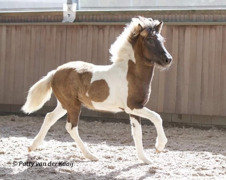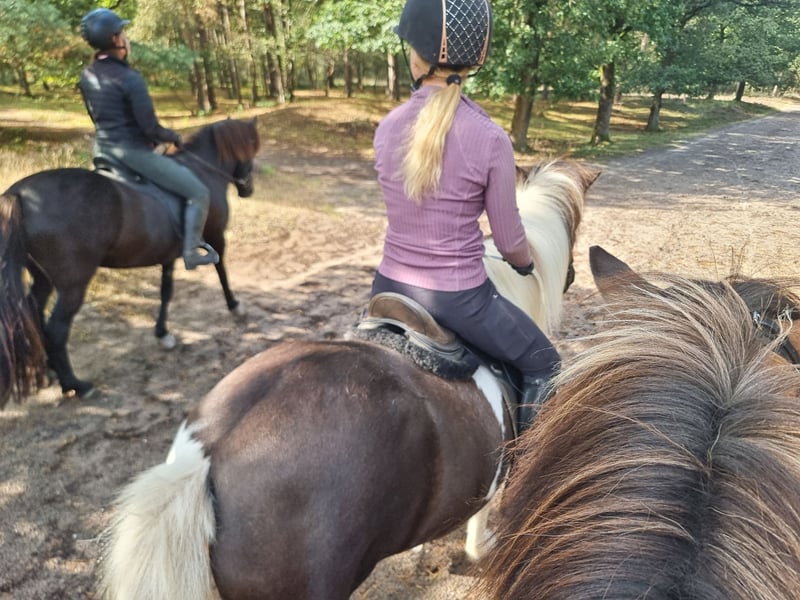 Evita is een hele gave merrie met potentie voor de sport. Ze is door mijzelf gefokt (moeder is ook nog aanwezig) en op 5 jarige leeftijd is zij zadelmak gemaakt en verder ingereden met behulp van een goede trainer. Op 4 jarige leeftijd heeft zij een veulen gehad van Mafur fra Kjarri, dit ging allemaal heel goed, ze is een erg zorgzame moeder. Evita is echt een prinsessen paard, ze houd van aandacht en lekker gepoetst te worden. Daarnaast is ze absoluut niet saai, ze geeft duidelijk aan wat ze spannend vind, maar vertrouwd op haar ruiter/ begeleider als die aangeeft dat er niks aan de hand is. Dit maakt alleen dat Evita niet geschikt is voor een onervaren of onzekere ruiter. Ze is een 5 ganger met ruime bewegingen. Bied de telgang zelf aan maar is nog niet getraind. Ze is braaf bij de hoefsmid en gaat makkelijk op de trailer. Ook gaat ze graag mee op buitenrit al vind ze dit alleen nog spannend, evenals groot verkeer. Ze is er aan toe, zoals ze zeggen, om kilometers te maken. Helaas kom ik hier door tijdgebrek (meerdere rijpaarden) niet aan toe en vind ik dat ze niet de aandacht krijgt die ze verdient. Ik zoek voor haar een nuchtere, duidelijke ruiter die graag met haar aan de slag gaat en het wellicht leuk vind om haar mee te gaan nemen op wedstrijd. Bij de juiste match is de prijs aanspreekbaar.