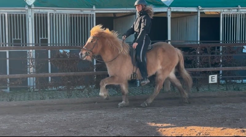 Hamingja es una yegua de cinco aires muy amigable y siempre motivada. Es hija del premiado Omur frá Kvistum. Hamingja ha sido montada ligeramente y muestra bajo la silla un natural tölt muy suelto. Ya ha mostrado prometedores inicios de paso de carrera. Bajo la silla, es muy tranquila después de poco tiempo y siempre quiere hacer todo bien. Por lo tanto, con una formación adicional, también es adecuada para principiantes. Hamingja está sana y se encuentra con nosotros en un grupo mixto.