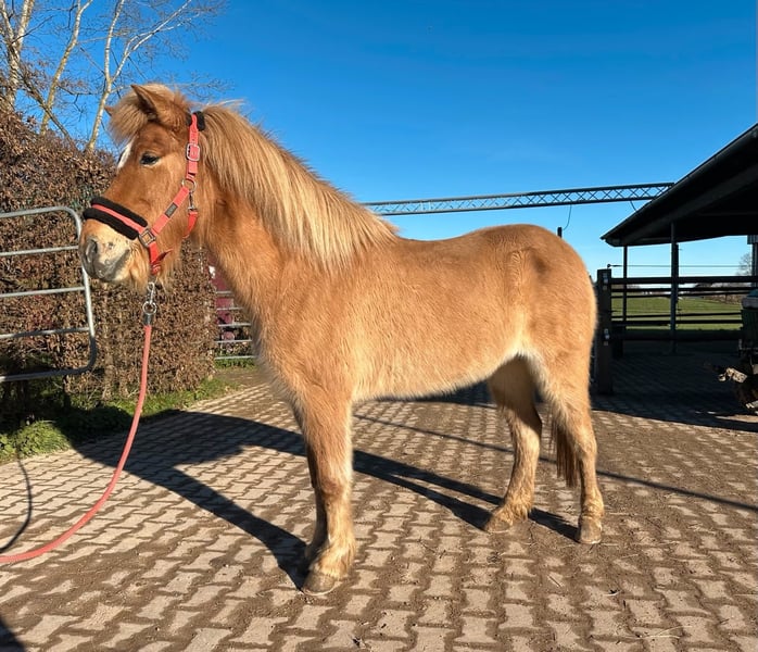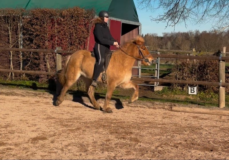 Hamingja is a very friendly and always motivated five-gaited mare. She is a daughter of the award-winning stallion Omur frá Kvistum. Hamingja has been lightly started under saddle and shows a lot of relaxed natural tölt. Already now, she has demonstrated promising pace tendencies. Under saddle, she is very well-behaved after a short time and always wants to do everything right. With further training, she is therefore also suitable for beginners. Hamingja is healthy and is kept with us in a mixed herd.