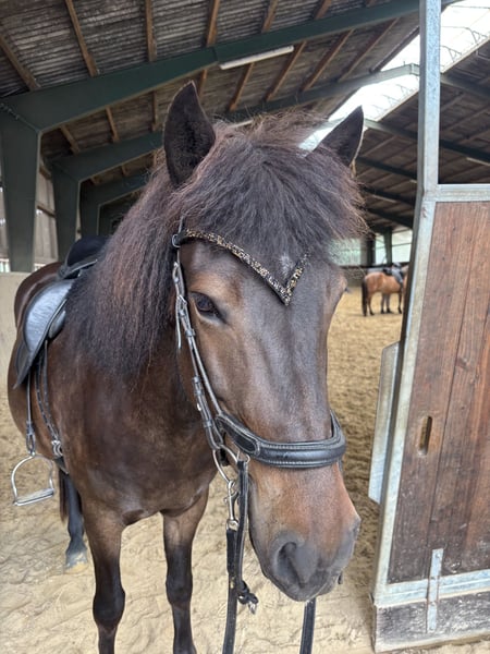 Embla ist eine großrahmige Viergangstute mit vielen Möglichkeiten. Sie hat vier klar getrennte Gänge und viel Talent. Ihre Grundgangarten sind leicht abrufbar, fleißig und taktklar mit schicken Bewegungen. Im Tölt benötigt sie hier und da etwas Unterstützung, mittlerweile ist er aber immer sicher da und taktklar. Bei weiterem Training wird sie sicher mal eine sehr ordentliche Tempovarianz haben, bisher fällt ihr das langsame bis mittlere Tempo jedoch am leichtesten. Embla ist ein Pferd, welches immer eine positive Arbeitseinstellung hat und mit viel Energie ihre Aufgaben erfüllt. Sie ist sehr lernwillig und möchte immer gefallen. Charakterlich ist sie außergewöhnlich menschenbezogenen, sie kommt immer freudig zu einem und mag es sehr betüdelt zu werden. Im Gelände ist sie unerschrocken und sehr motiviert, mit ihr kann man stundenlang die Wälder erkunden. An Turnieren, Urlauben und Auswärtstraining hat sie auch schon teilgenommen und meisterte dies immer sehr souverän und gelassen. Sie wurde regelmäßig dem Zahnarzt und dem Osteopathen vorgestellt. Alles in allem ist Embla eine wirklich interessante Stute, mit viel Talent und Charme. Ich suche für sie jemanden, der Lust hat weiter mit ihr zu arbeiten um ihr volles Potenzial auszuschöpfen. Mit ihr wird man viele tolle Ritte haben, egal ob auf Turnieren, im Dressurviereck oder im Gelände. Aufgrund ihres hohen Energielevels ist sie nicht für Anfänger geeignet. Ich gebe sie nur schweres Herzens ab und nur für das absolut passende Zuhause, daher gilt hier auch Platz vor Preis. Weitere Bilder und Videos, gerne auf Anfrage.