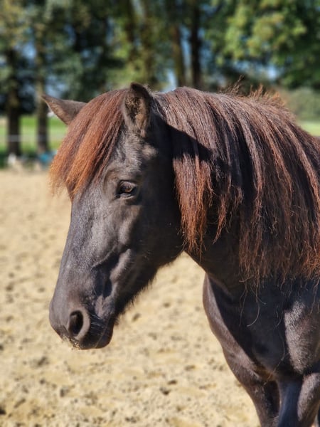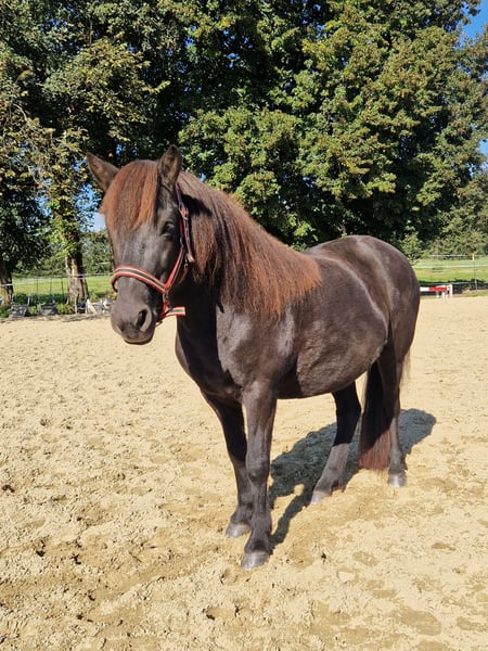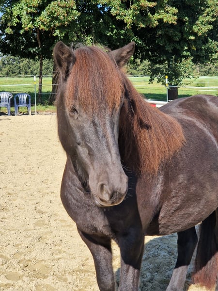 Zum Verkauf steht eine wunderschöne Islandpferdestute, geboren 2017 in Deutschland. Nepja hat ein Stockmaß von 137 cm, im stämmigen Islandtyp, ist gesund und Ekzem frei. Nepja kam mit 5 Jahren zu uns aus der Aufzucht. Wir haben sie sehr schonend angeritten. Sie hat eine solide Grundausbildung und wurde bei uns überwiegend im Gelände geritten. Sie geht brav alleine oder in der Gruppe ins Gelände und ist dabei unerschrocken. Nepja ist 4 Gänger, wir haben sie aber bisher nur 3 gängig geritten. Sie bietet Trab an der angenehm zu siitzen ist, Tölt haben wir nie gefördert, für uns war es okay sie so zu reiten mit dem was sie anbietet. Die Stute ist sehr menschenbezogen vom Boden aus, wenn man regelmäßig mit ihr arbeitet kommt sie auch auf einem zu im Offenstall. Beim Reiten ist sie unkompliziert, sie reagiert sehr schön auf die Hilfen und man hat nichts in der Hand. Generell kann man sagen, dass sie fein zu Reiten ist. Rund um eine sehr liebe und bemühte Islandstute die gut vorwärts geht aber immer händelbar ist. Wir wünschen uns für sie eine Offenstallhaltung für die Zukunft da Nepja sehr sozial und gerne in der Herde ist. Dabei klebt sie jedoch nicht und ist leicht zu integrieren. Sie hat sehr gute Hufe. Ihre Zähne wurden regelmäßig behandelt und sie wurde regelmäßig entwurmt.